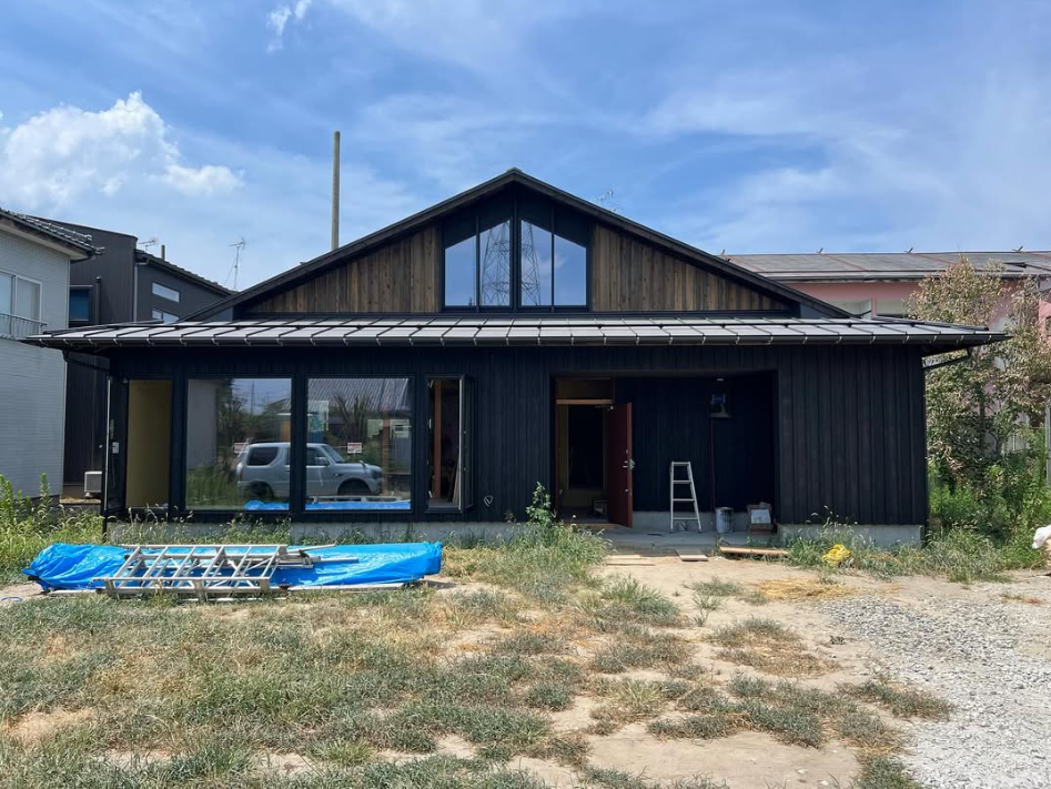 外壁はガルバリウム鋼板を基調に、南面は杉板張りで温もりを加えました。