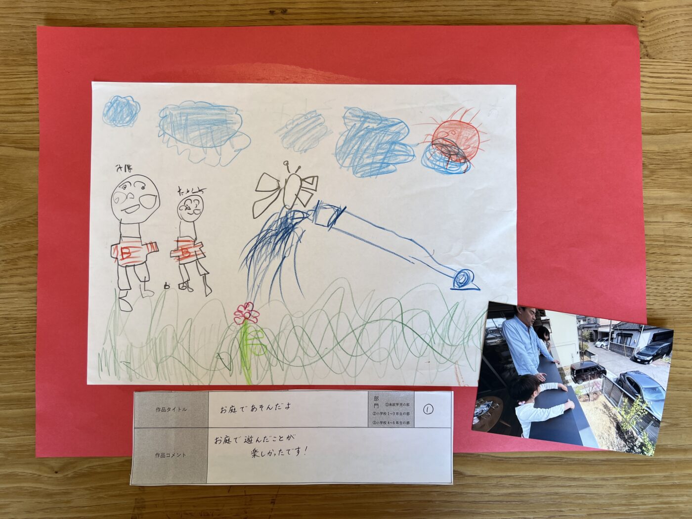 奥に描かれたお家の再現度の高さもすごいです!太陽光パネルまで載ってますね!笑