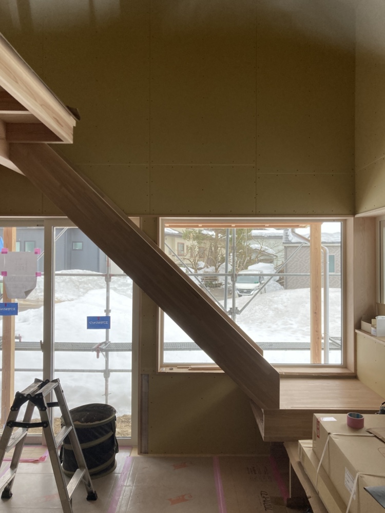 階段も最後の最後まで建て主さんと話し合った。やっぱりこっちのほうがいいと思う!といった感じで常に「どうしたらもっとよくなるか」を考えながらみんなで作り上げました。