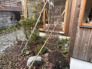冬支度をしました 毎年恒例ですが、クリスマス目前でやっとできました。 皆さんはもうお済みでしょうか? 雪囲い 樹木を屋根からの落雪や積雪による枝が折れるのを防ぎます。 毎年ホームセンターでわら縄2分の太さ1 … 続きを読む お庭の冬支度をしました。
