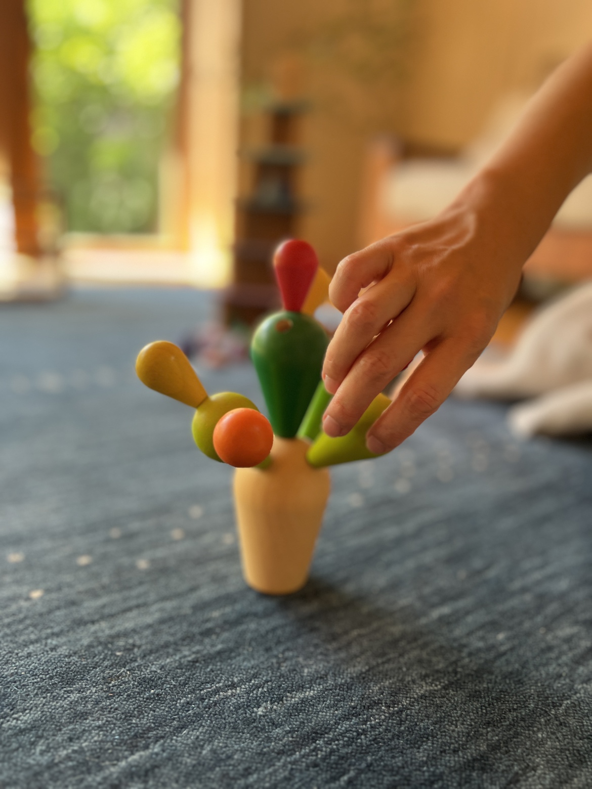 こちらは、倒れないようにバランスを取りながら、穴に差し込んでいくおもちゃ。