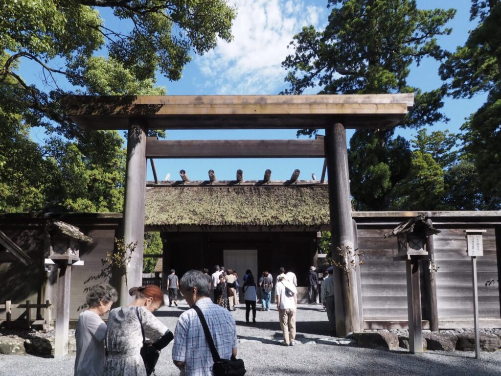 伊勢神宮の建築は、檜の白木を使った神明造が特徴で、装飾がない直線的な姿が印象的です。