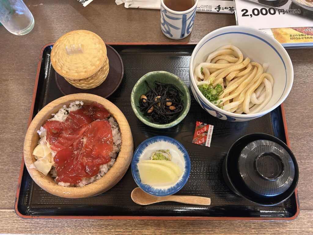 お昼はおはらい町で、伊勢の名物であるてこね寿司と伊勢うどんを堪能しました。