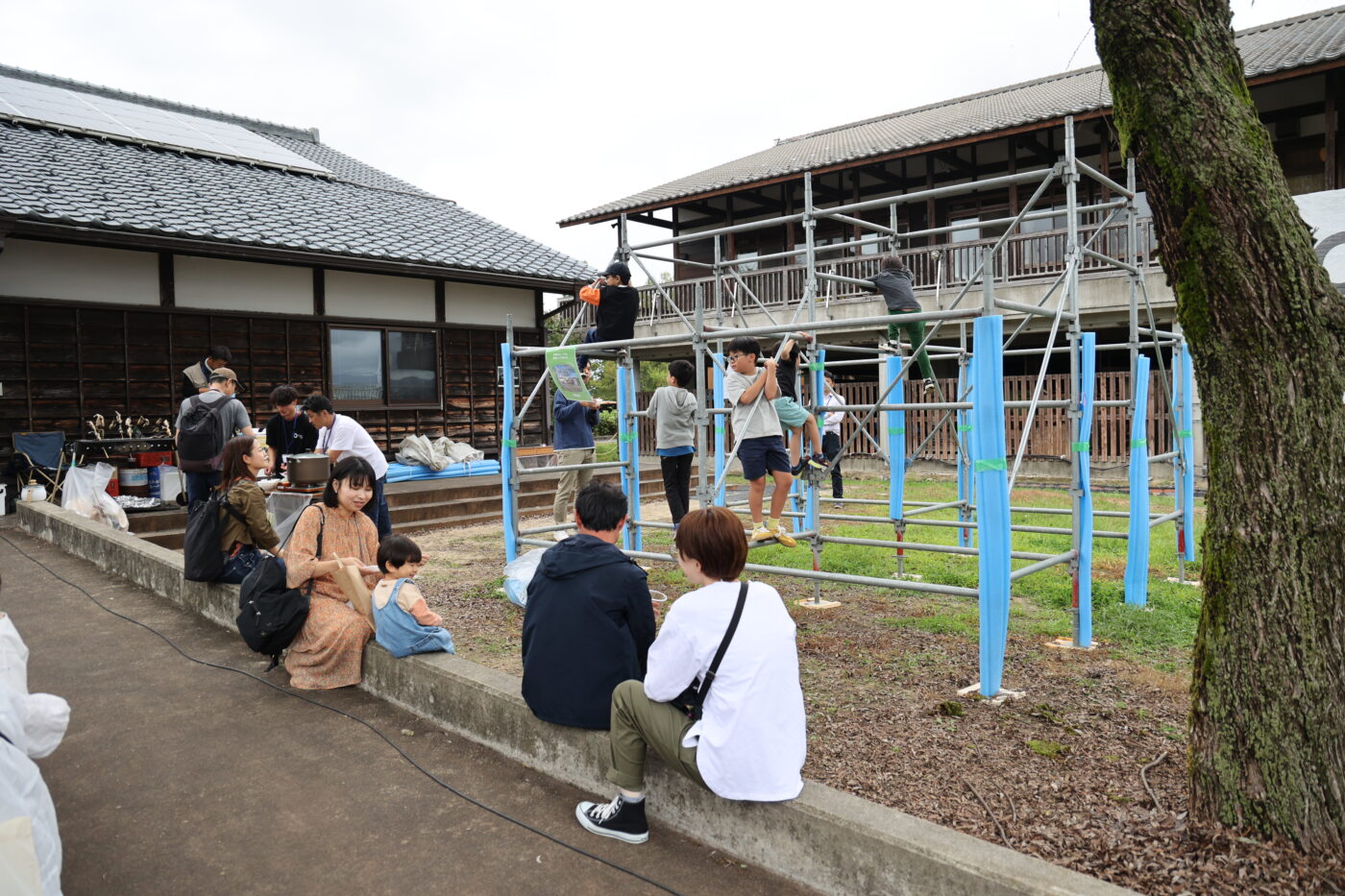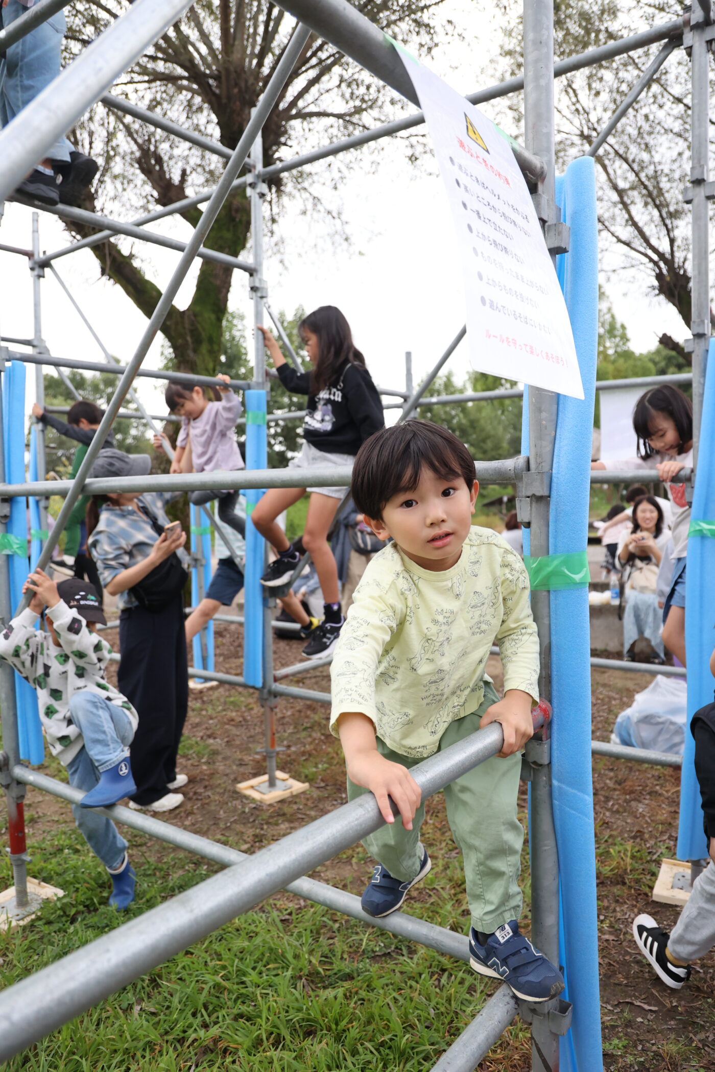 足場屋さんには、大きな足場のジャングルジムを組んでいただきました。