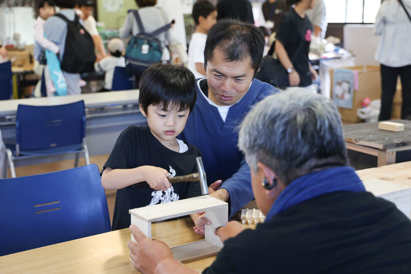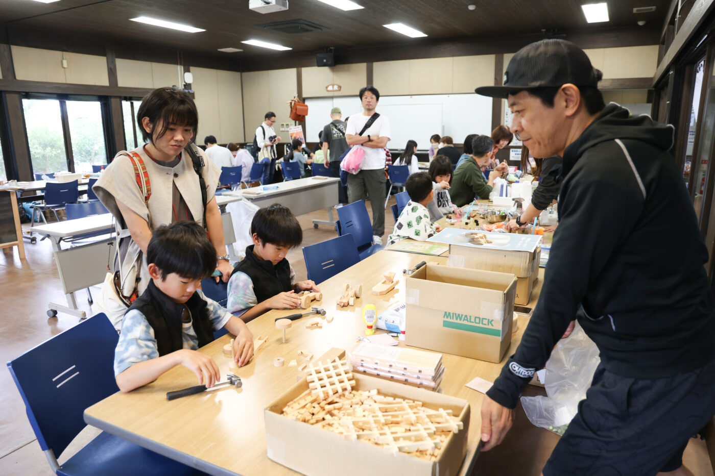 こちらは建具屋さんによる、木製ボートやくるまづくりのワークショップ。