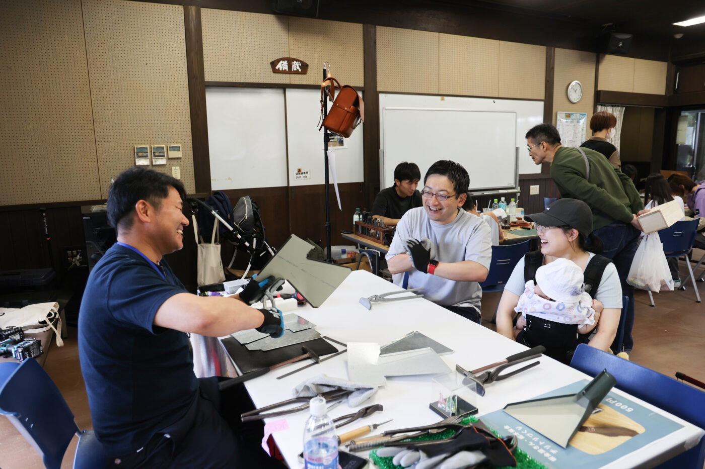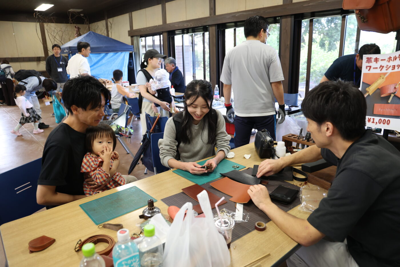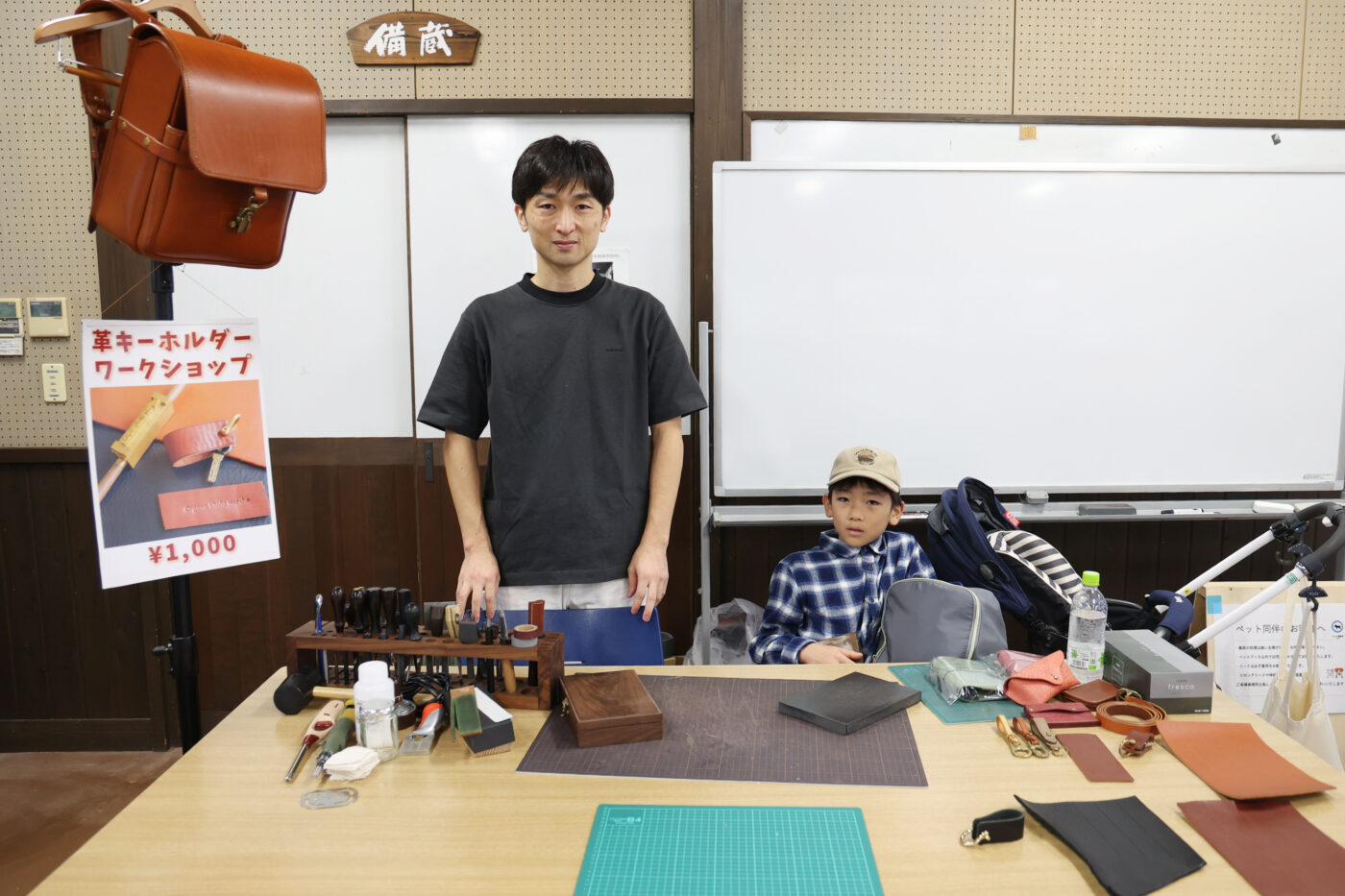 革と真鍮金具でつくるキーホルダーに刻印もできちゃうという、なんとも贅沢なワークショップ。