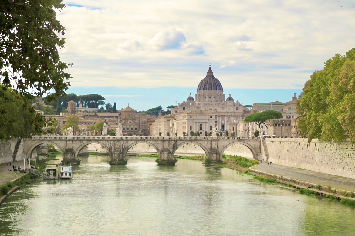 橋からはサンピエトロ大聖堂のドームも良く見えていた。