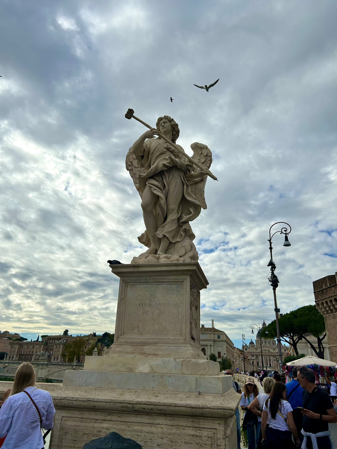 城の頂上にそびえ立つ大天使ミカエル、橋に並ぶ10体の天使像。