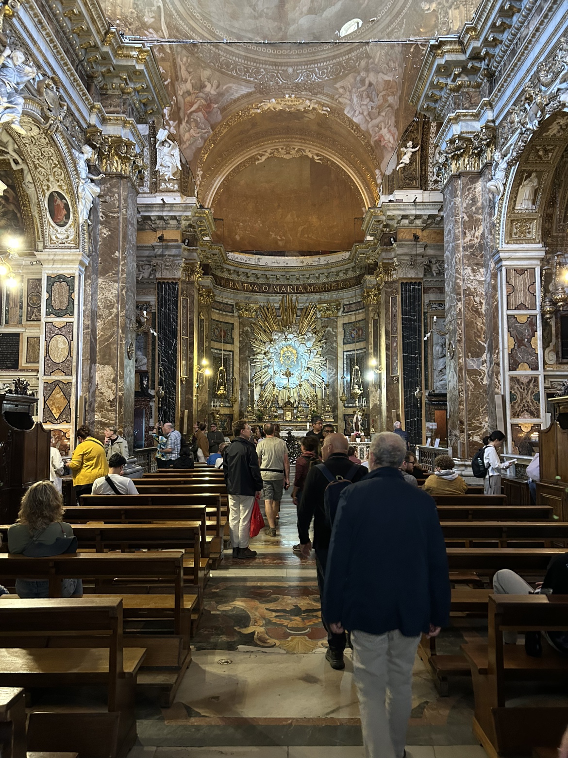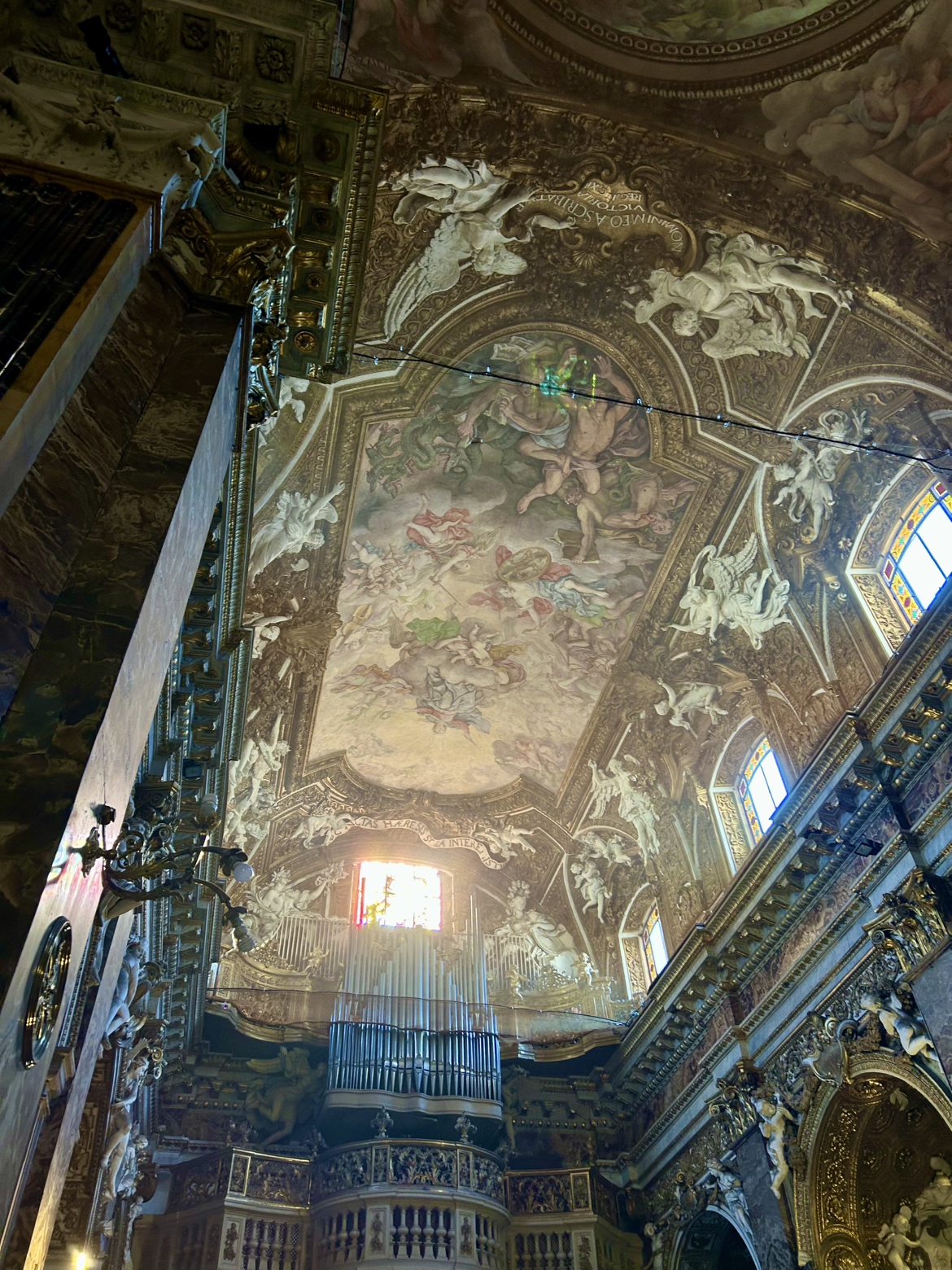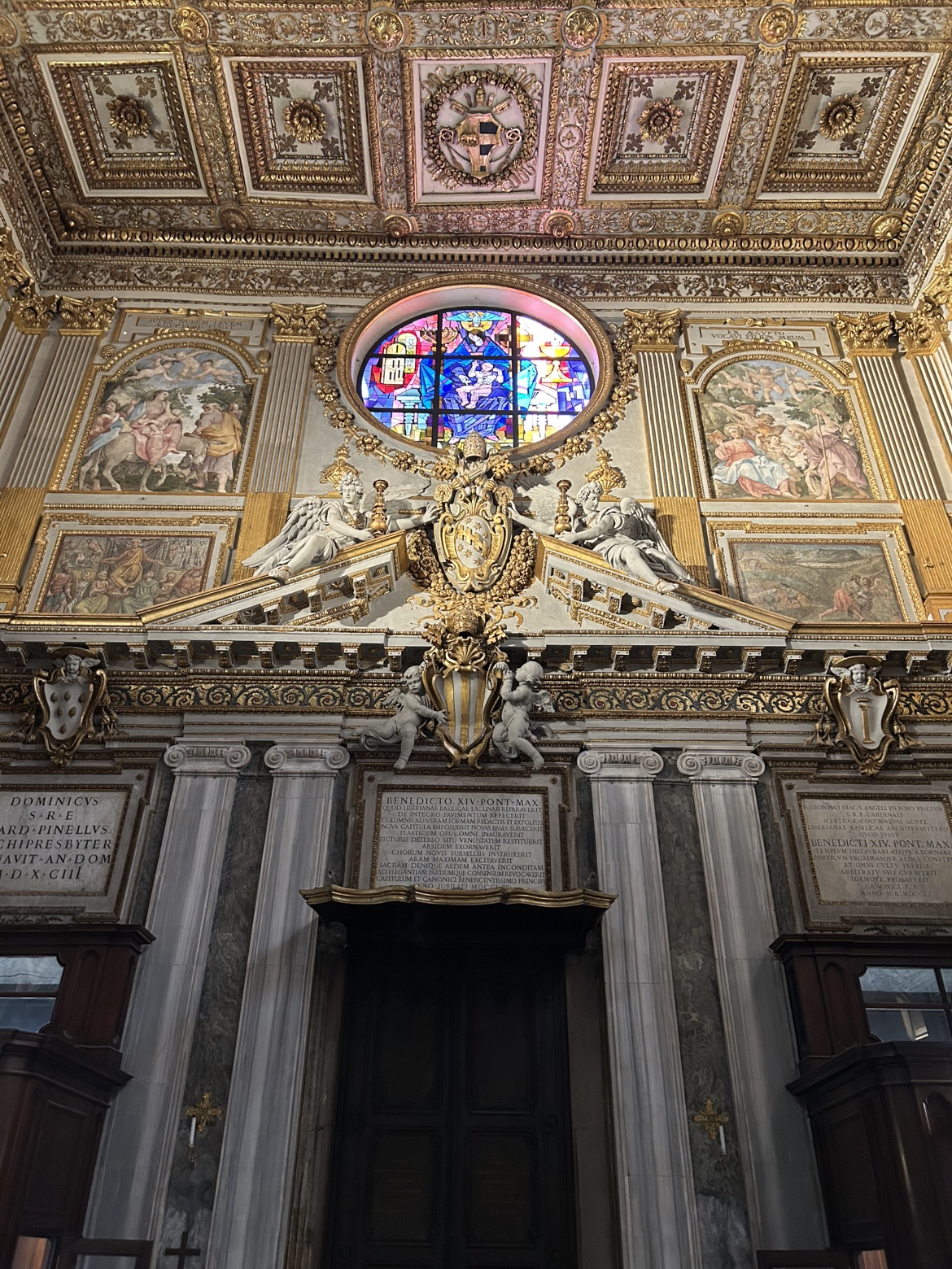 昨日訪れたサンピエトロ大聖堂にも負けず劣らず、天井も立派に装飾されている。