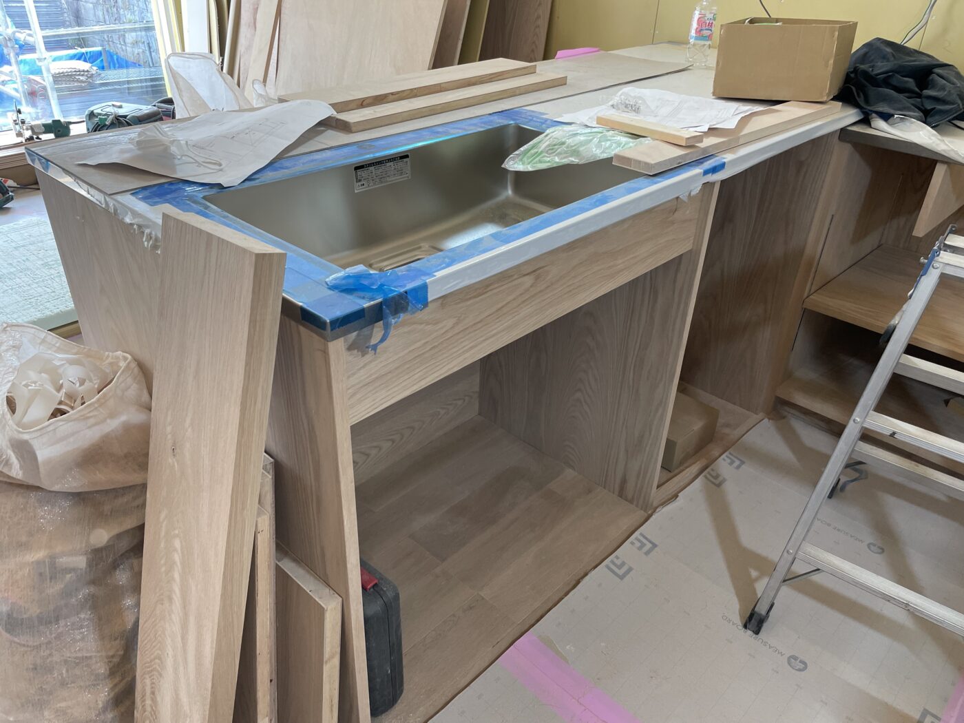 キッチンも大工さんによる造作で、天板は全面ステンレス。レイアウトはU型(コの字型)を採用。