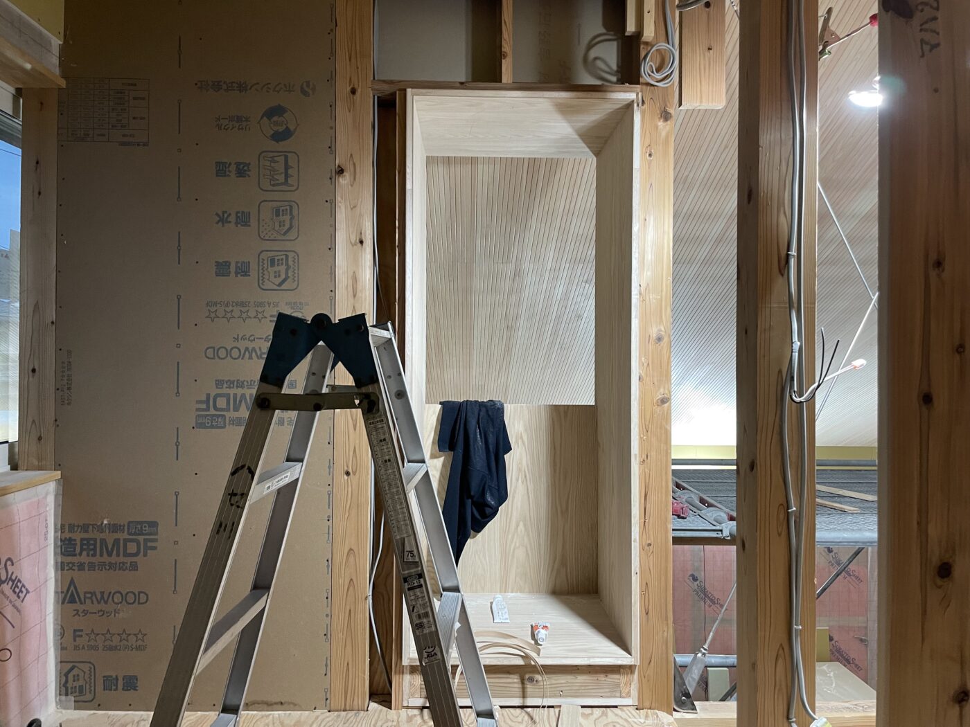 収納とはいえ人が上がることも想定し、構造梁の上に箱型の下地を組んでしっかりと固定させました。