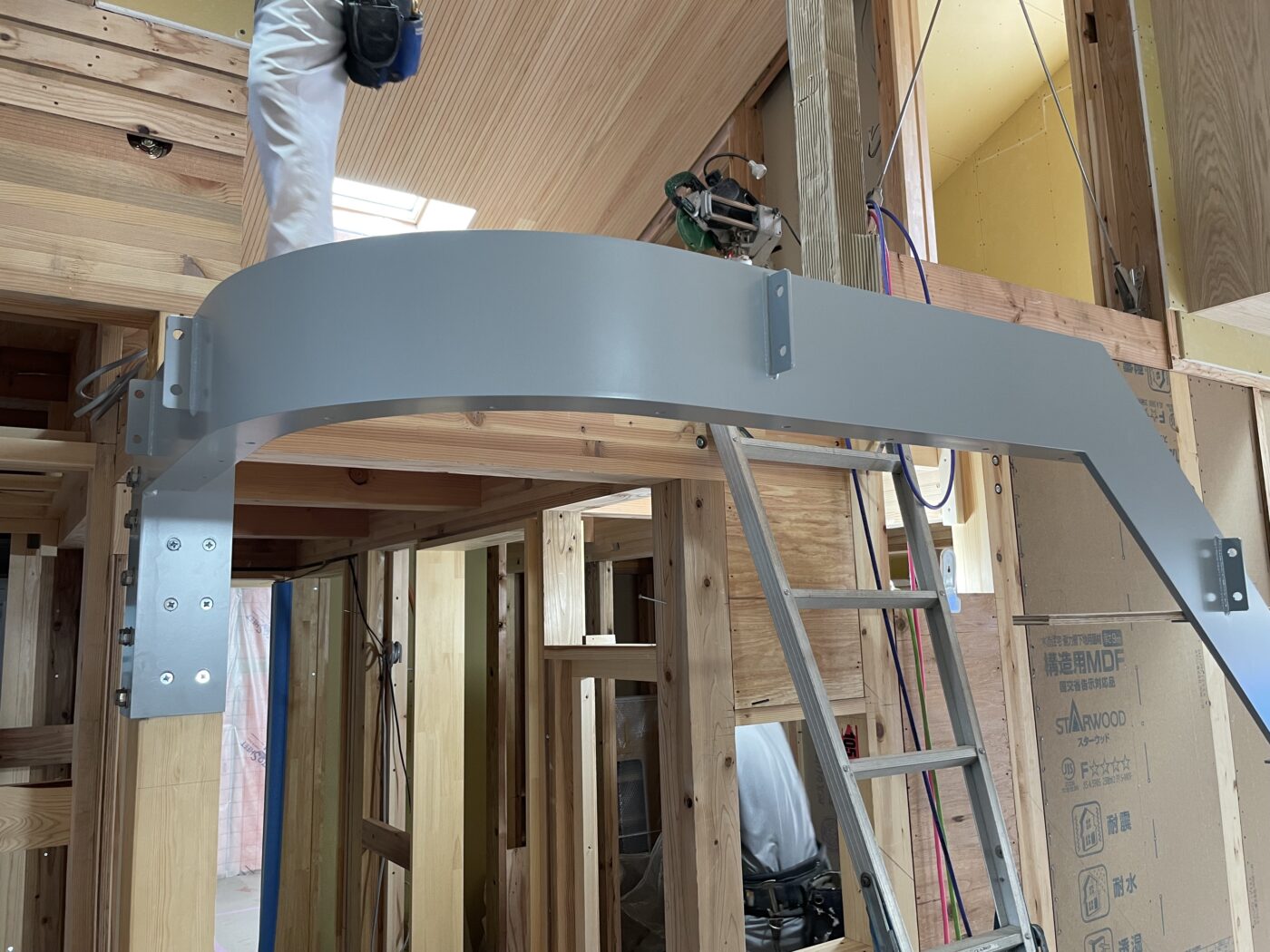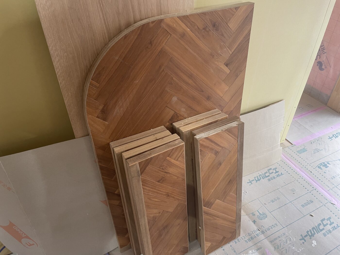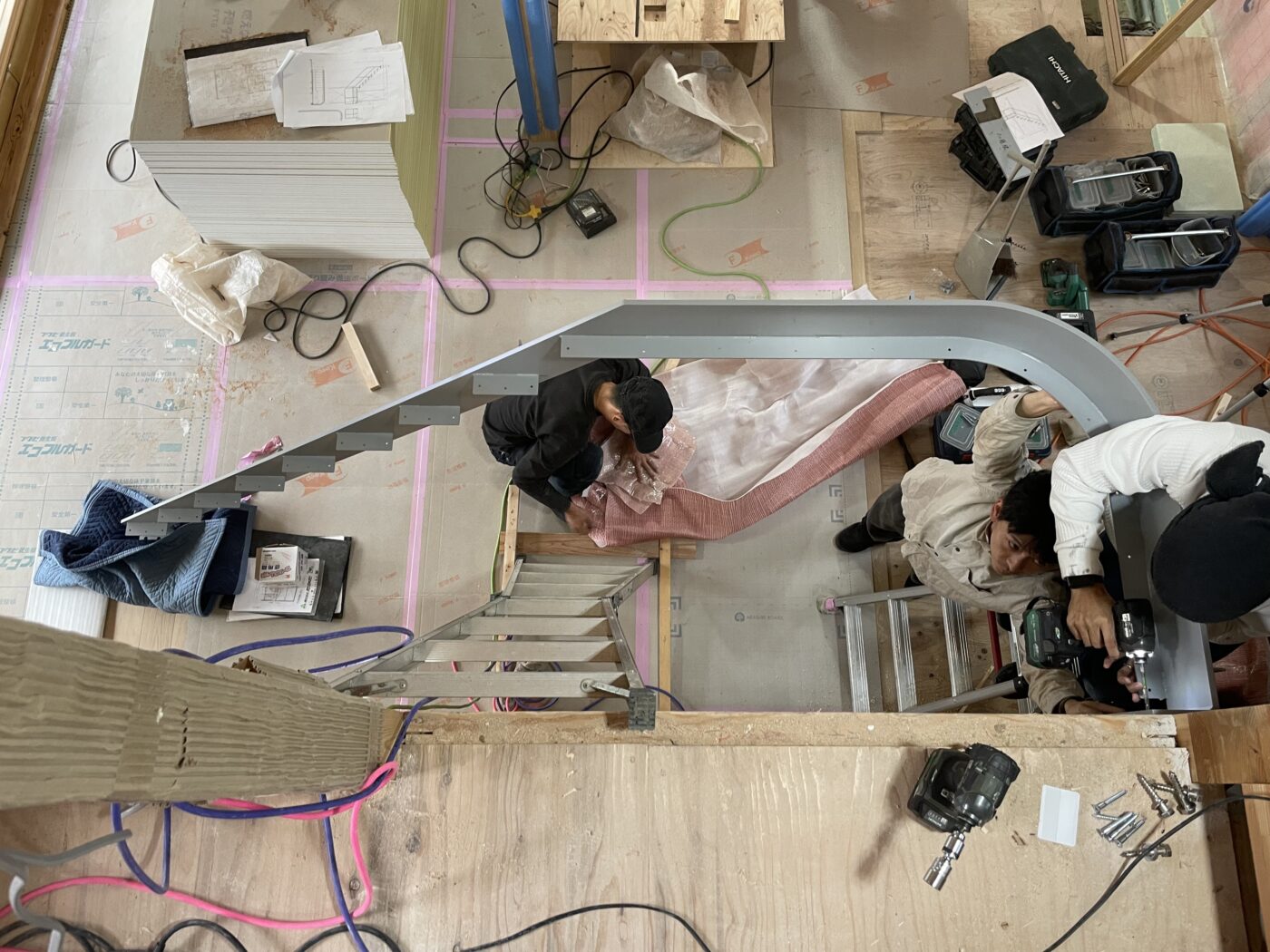 1枚だけある大きい板は踊り場用で、こちらにもR形状を取り入れております。