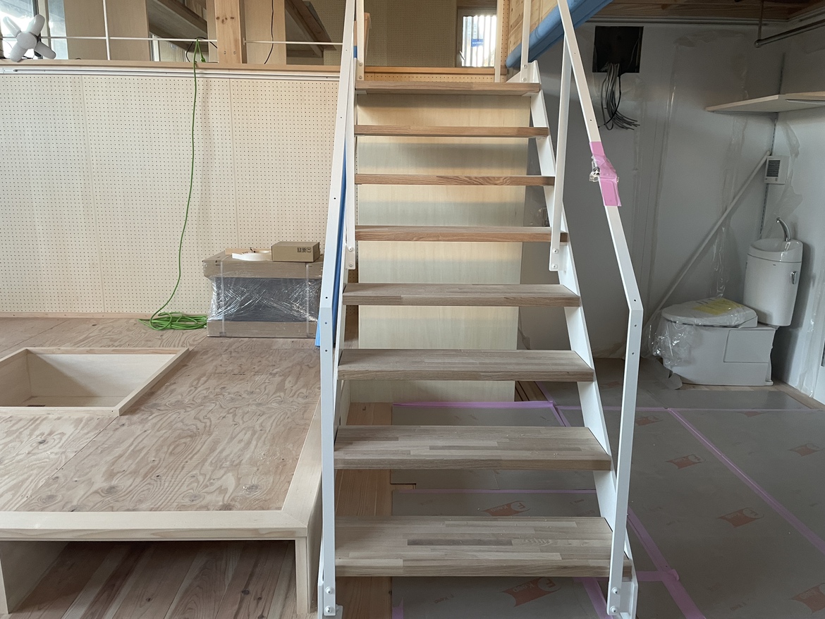 鉄骨階段が取り付き、機器が設置され完成が見えてきました。