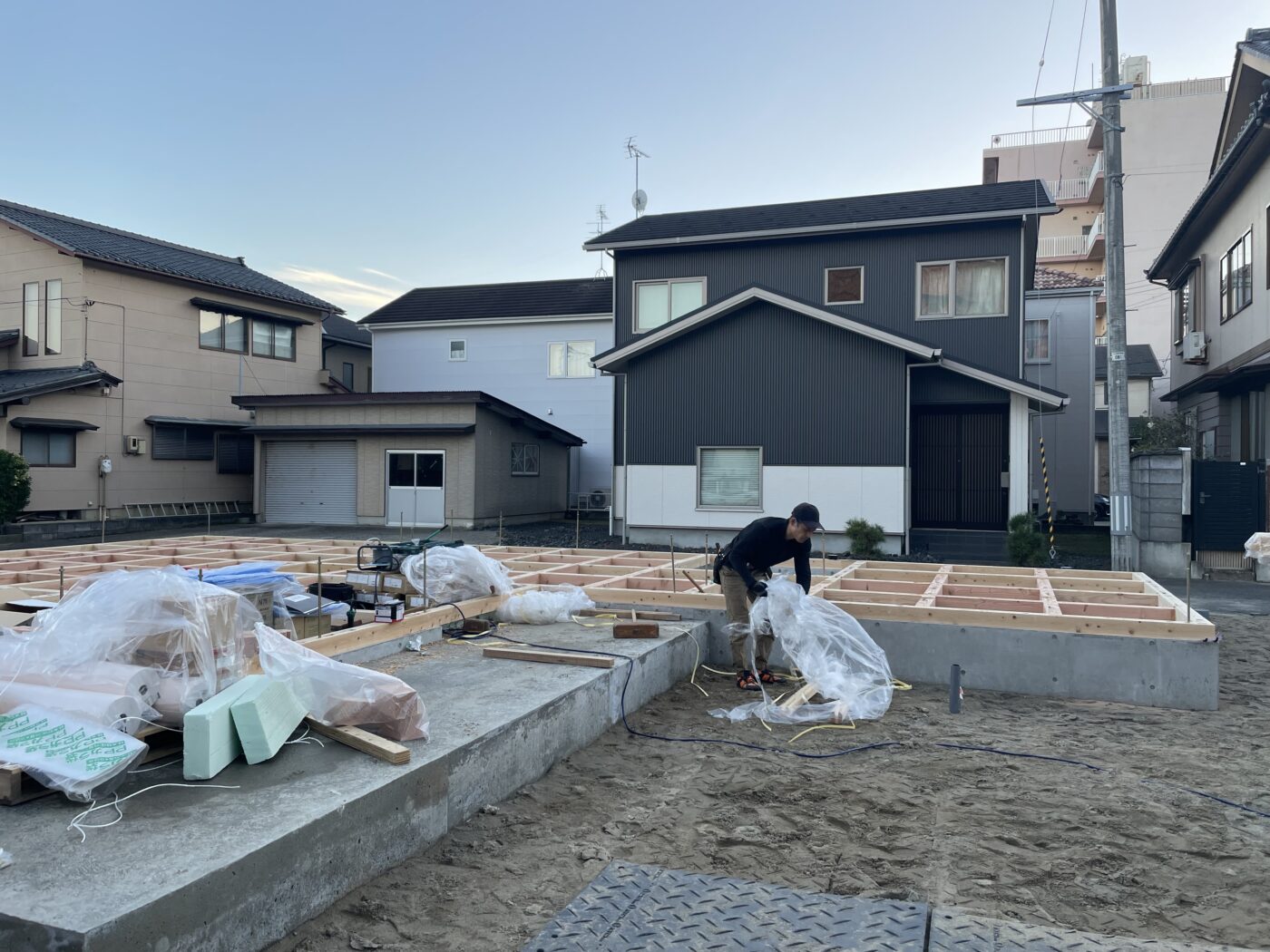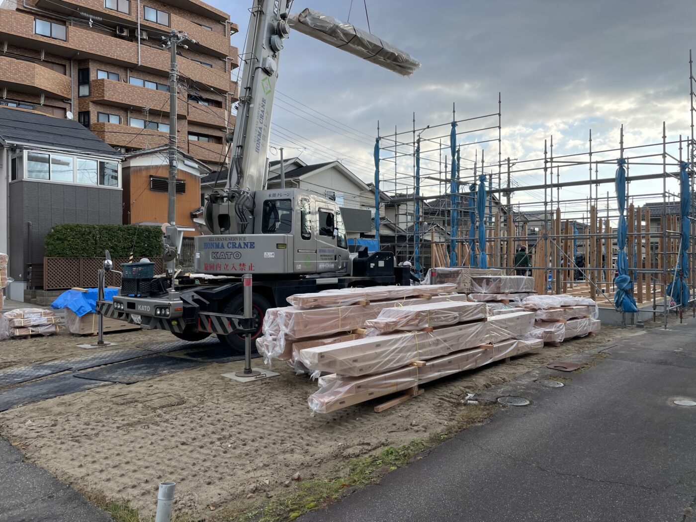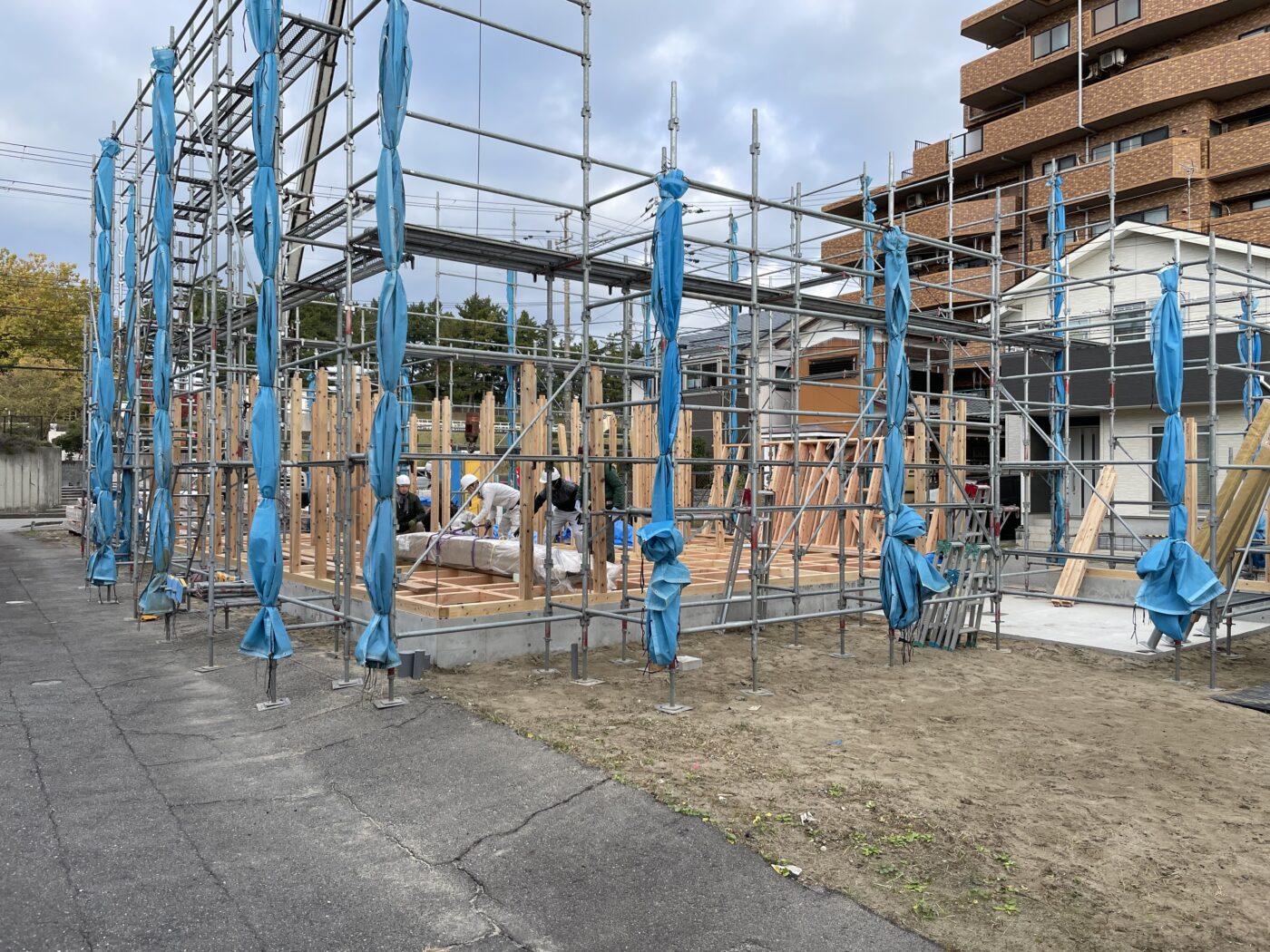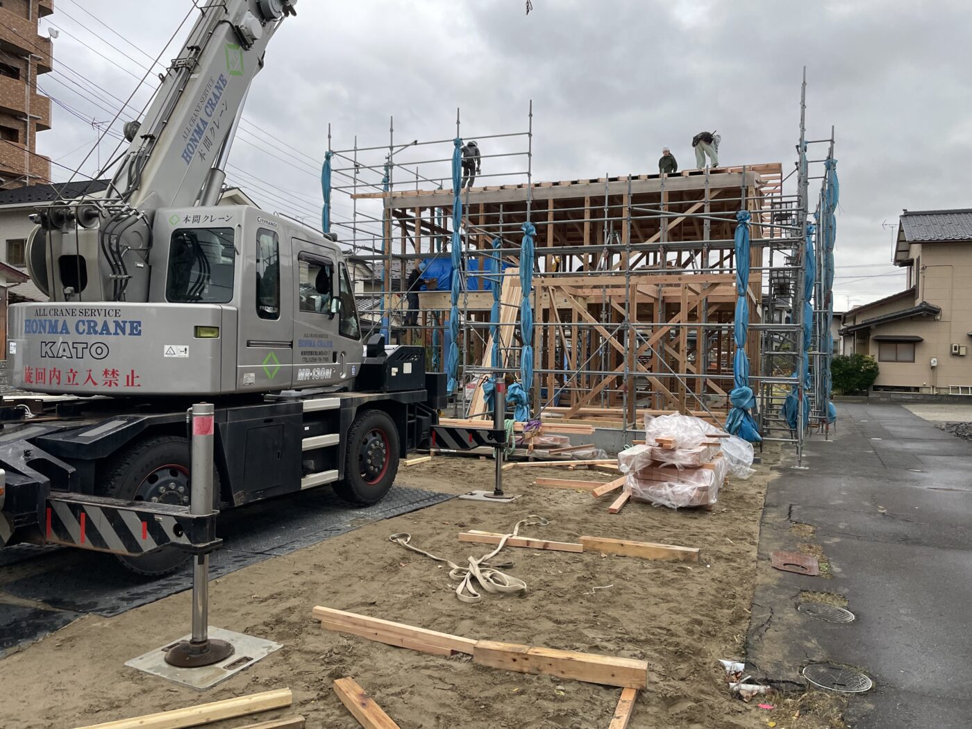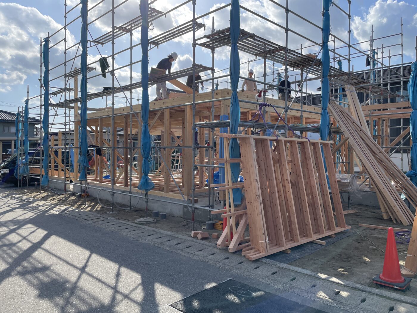 一時雨が降る場面もありましたが、無事故かつ順調に上棟、その後屋根防水まで完了いたしました。