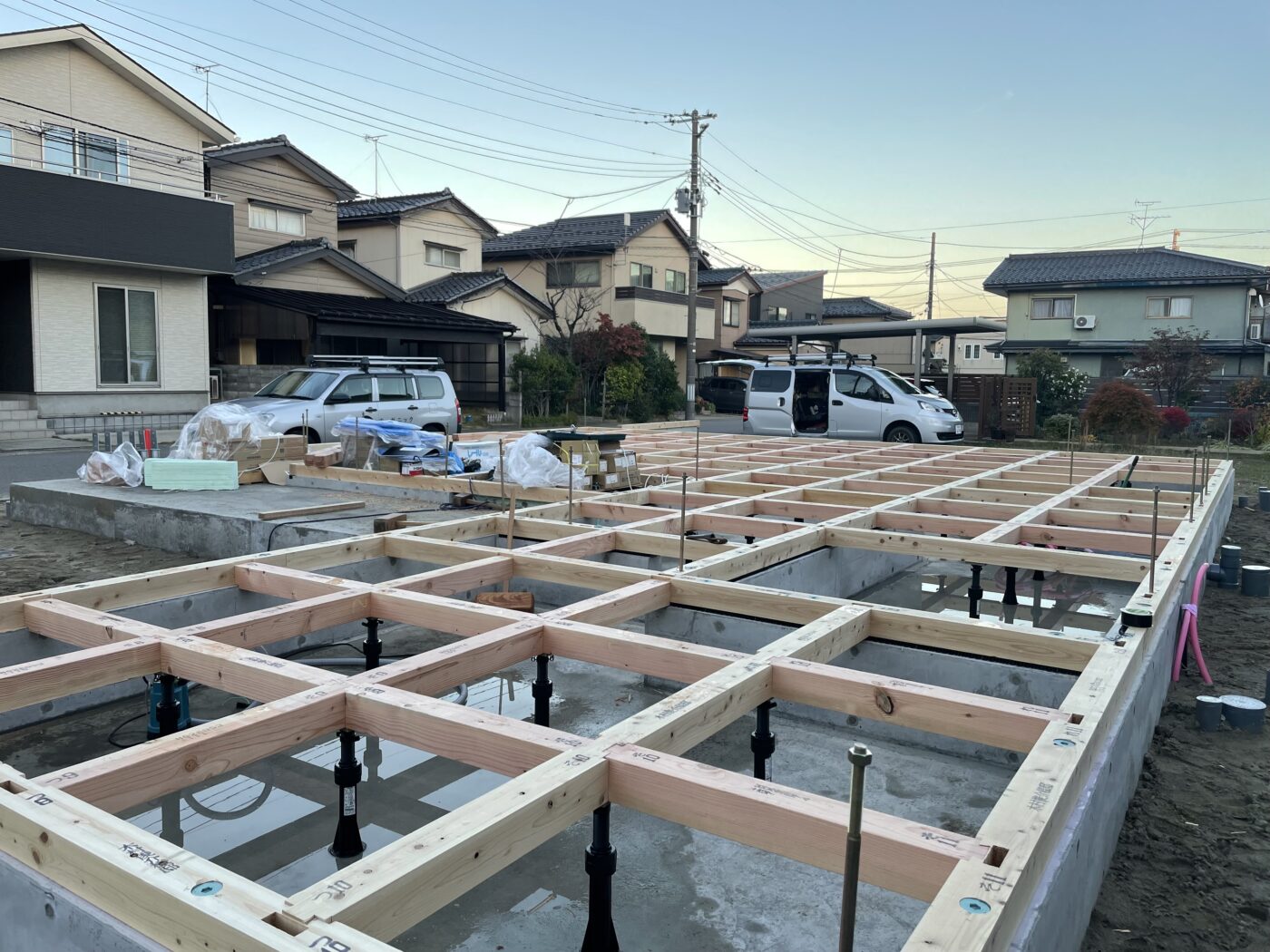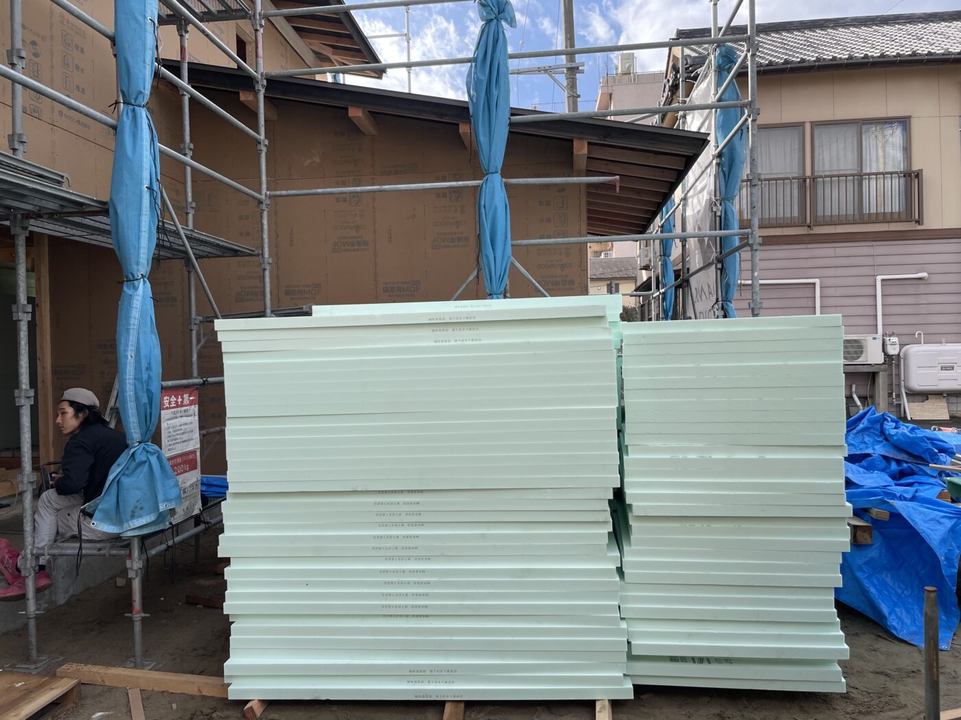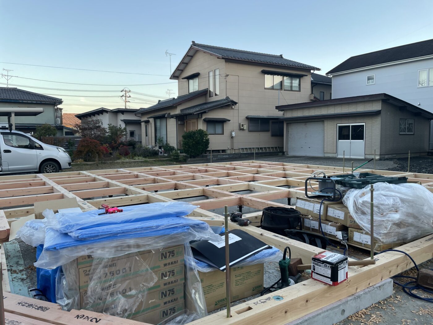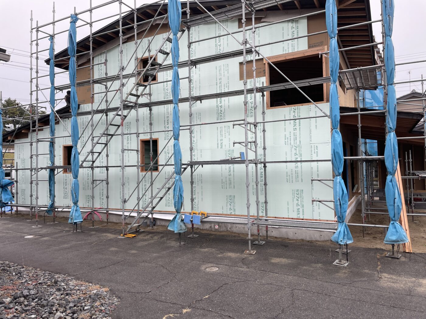 一時雨が降る場面もありましたが、無事故かつ順調に上棟、その後屋根防水まで完了いたしました。