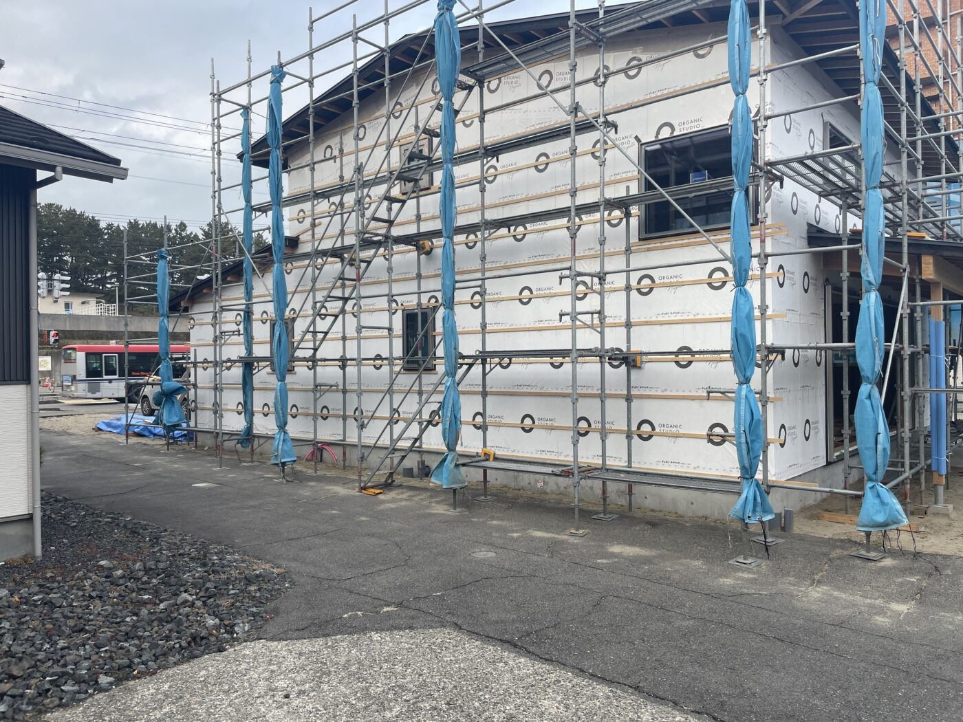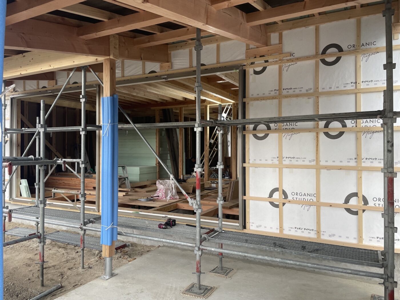 納まりの関係上一部外壁下地(胴縁)を二重にしております。