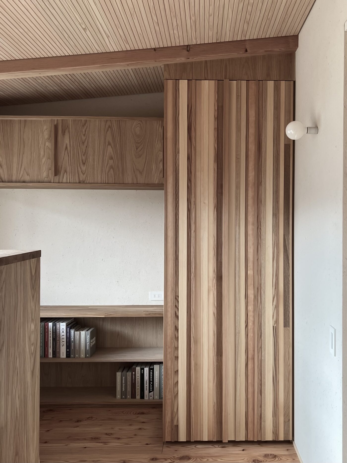 とはいえ、この家では、生活の延長線上にたまたま仏壇があり、暮らしの中に自然と置かれた仏壇です。その状況を受け止めるための扉です。この扉が何かを語りすぎる必要はないのだと思います。仏壇の前で手を合わせるとき、人は必ずしも言葉を必要としていません。ただ、開ける。ただ、触れる。そのときに、少しだけ違う感じがする。この扉がしているのは、たぶんそれくらいのことであり、それで十分なのではないか、と今は思っています。
