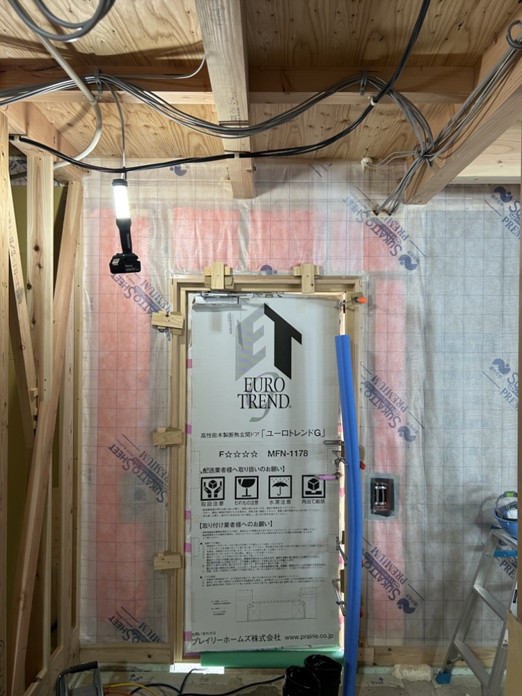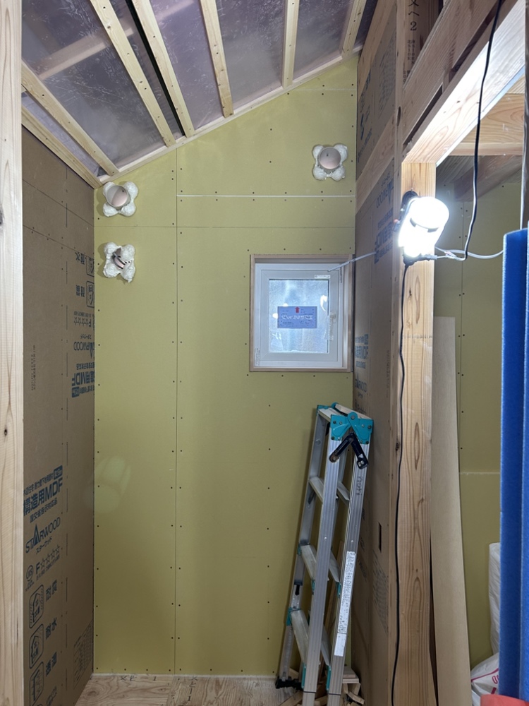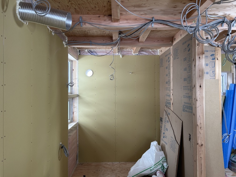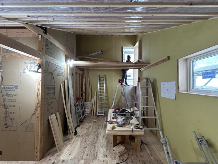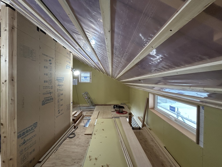 「長岡の家」内部断熱・気密 2026.01.21 ゲンバLIVE! 刈谷 裕樹 「長岡の家」では配線確認が完了しました。 内部では外周面の塞ぎ作業がどんどん進んでいます。 基礎断熱、壁断熱と下から順に施工が進んでいき、 来週の天井セルロースファイバー吹込みに向けた シート貼りが完了しました。 難しい窓枠を納める大工さん。 現場監督 刈谷 裕樹 建築部 二級建築士 Xでシェア Facebookでシェア