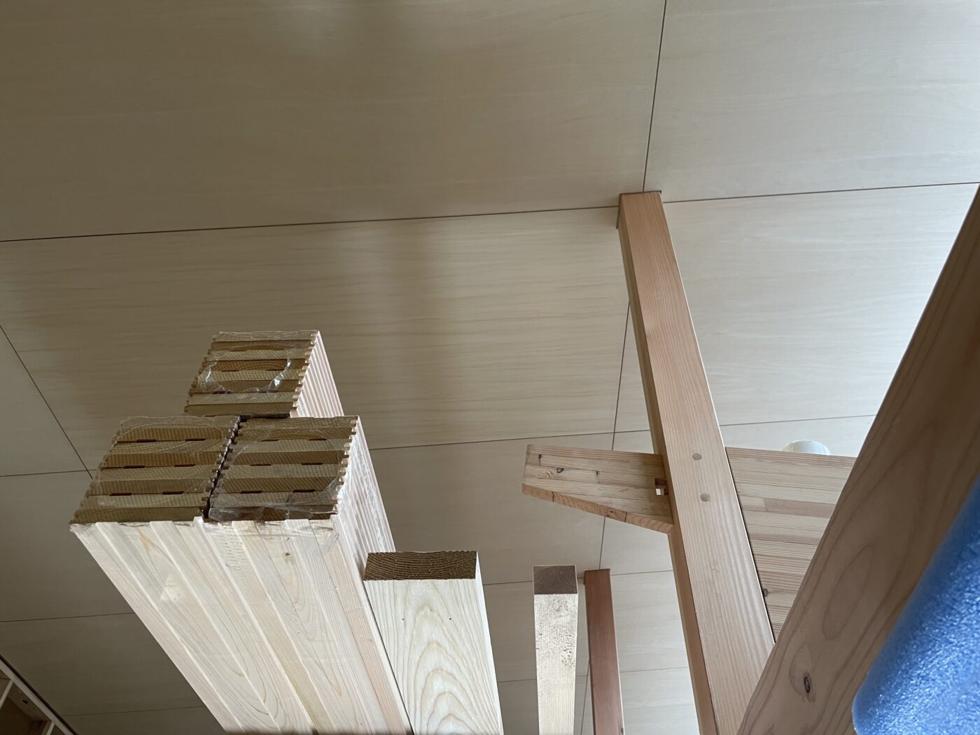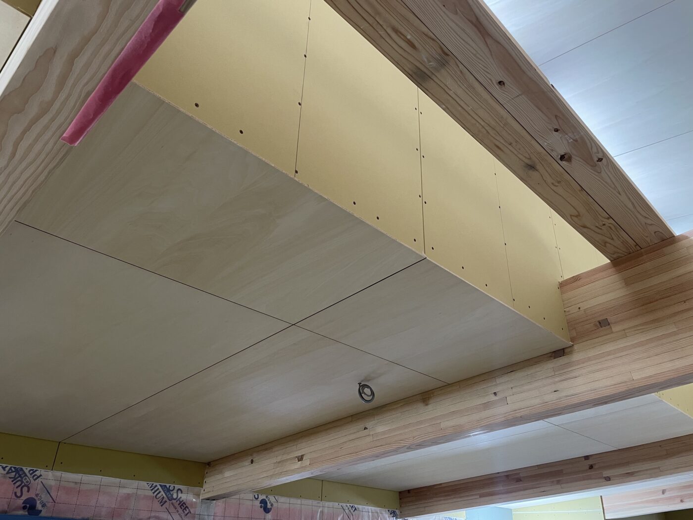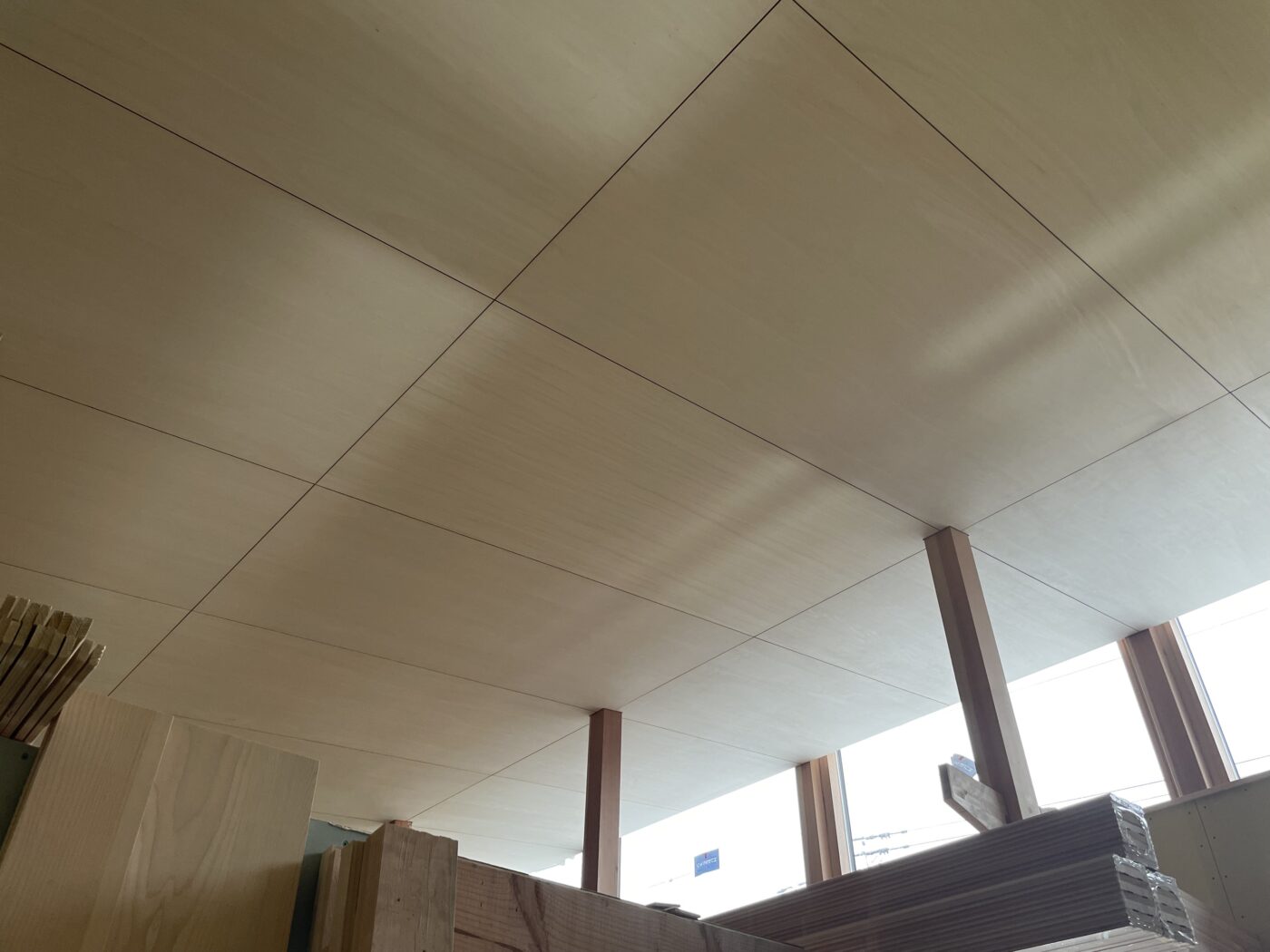 天井仕上げはシナベニヤ合板を採用。