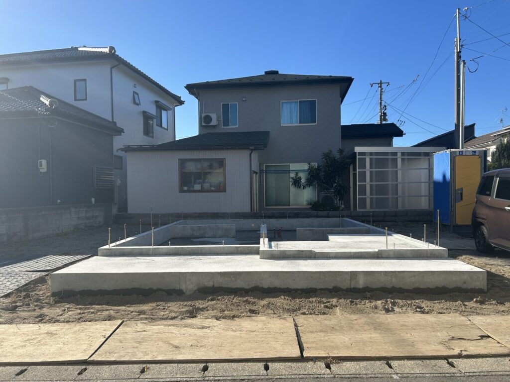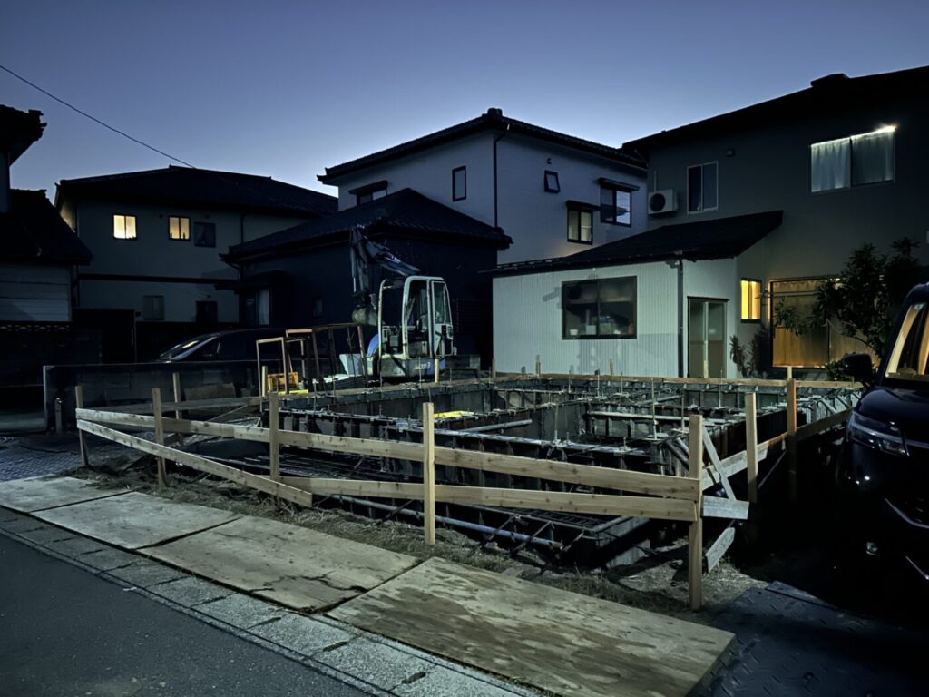 年明けから建て方が行えるように、昨年末に基礎工事を行いました。