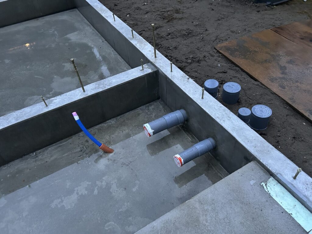 基礎工事と同時に給水・排水の施工も行われています。