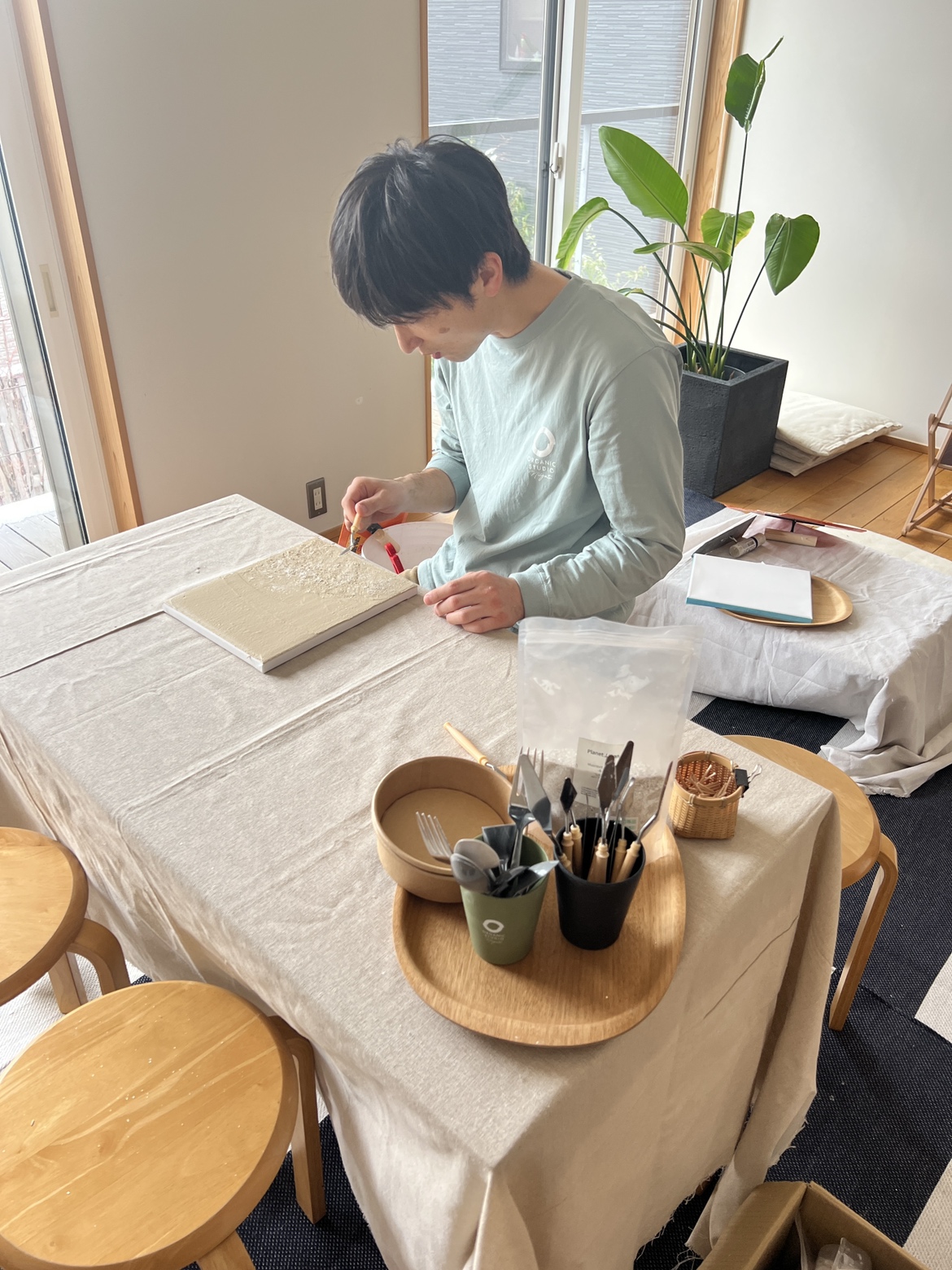 模様をつけたり、飾りをのせたり、思い思いの漆喰アートを楽しんでいただきました!