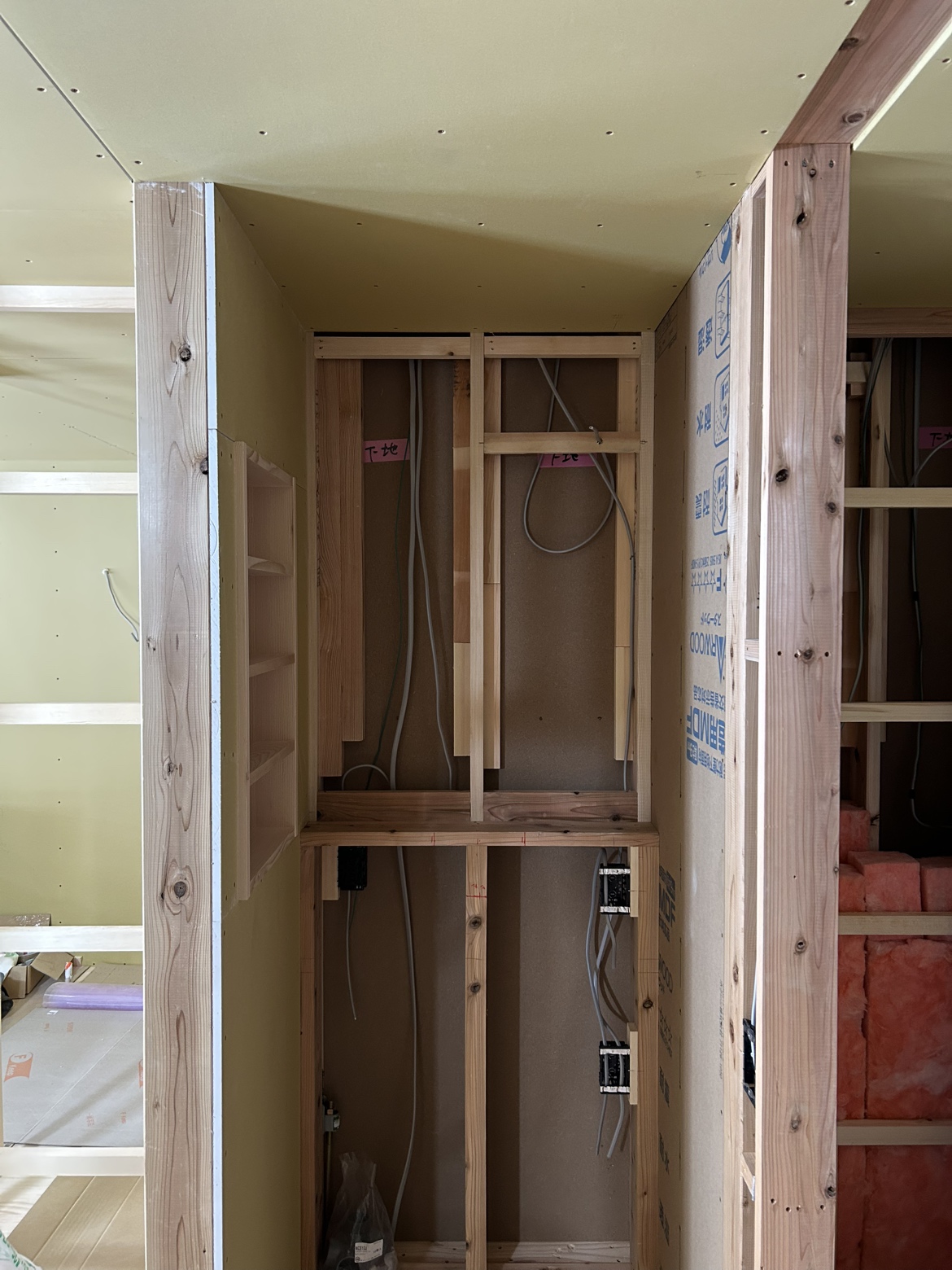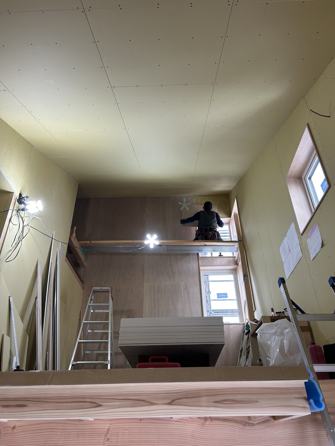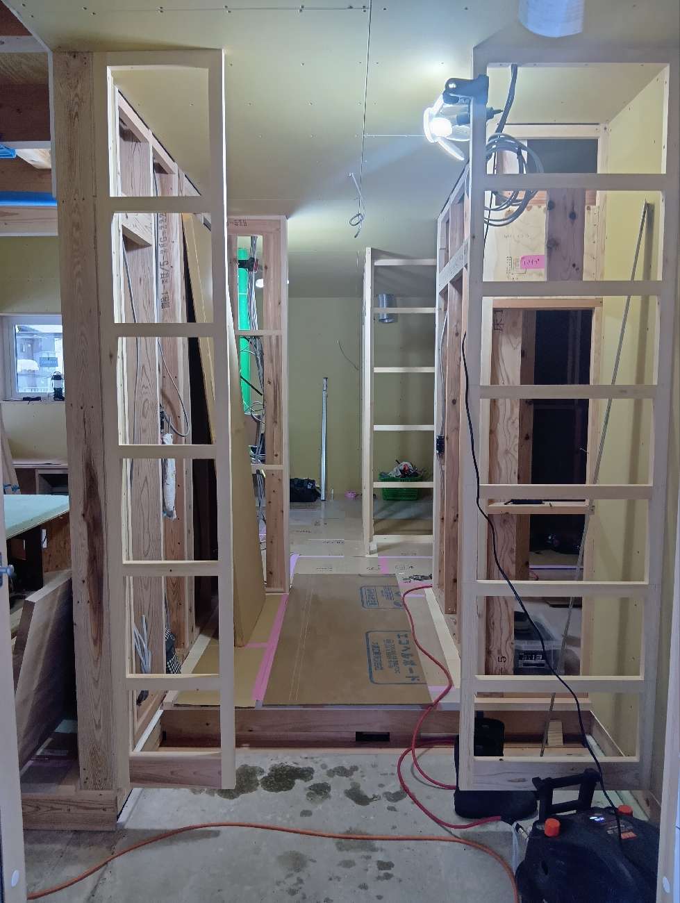 床貼りが完了し、内周部の間仕切り壁も立ち上がってきました。