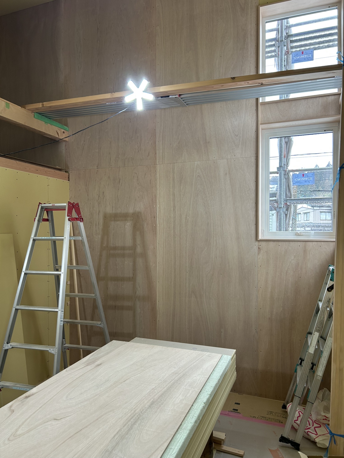 また、2階のボルタリング用のベニヤ壁も貼り始めました。