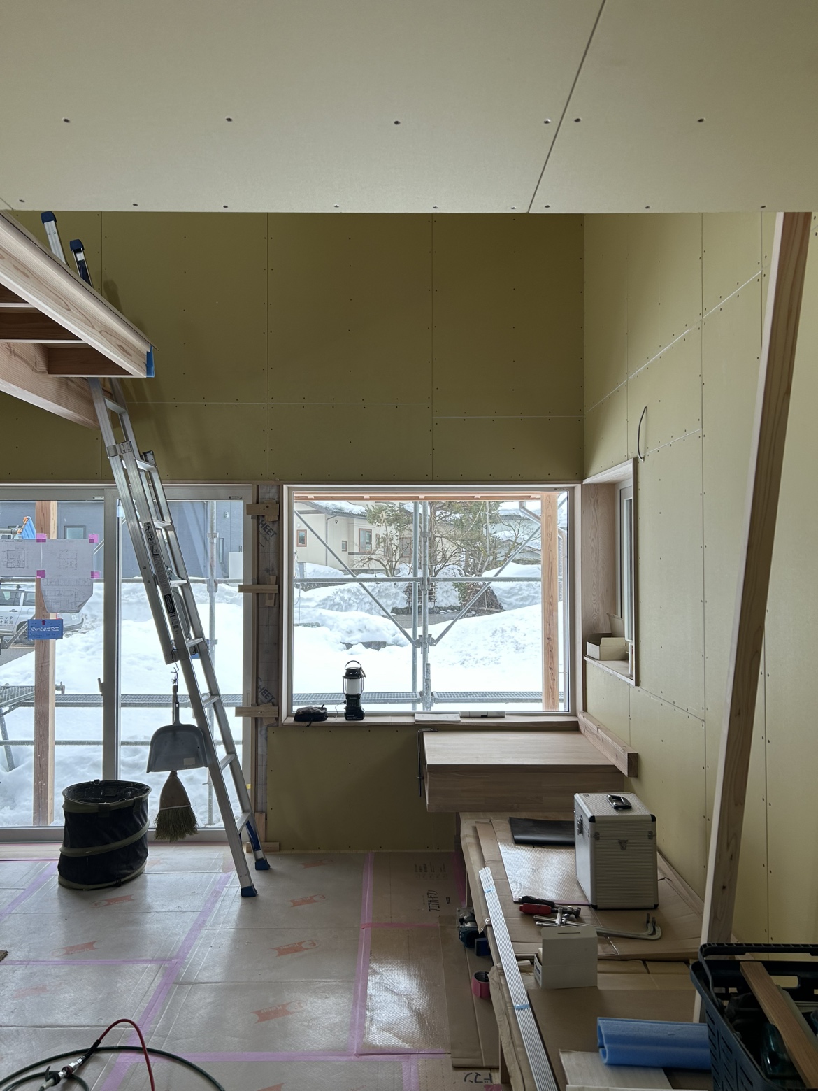 「長岡の家」では、引き続き大工による造作工事が順調に進んでいます。