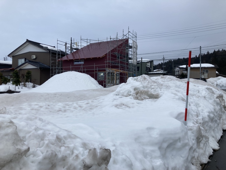 庭に積もり、道路からも除雪された雪はあまり溶けていません。