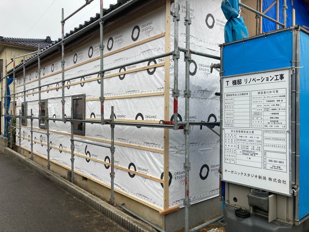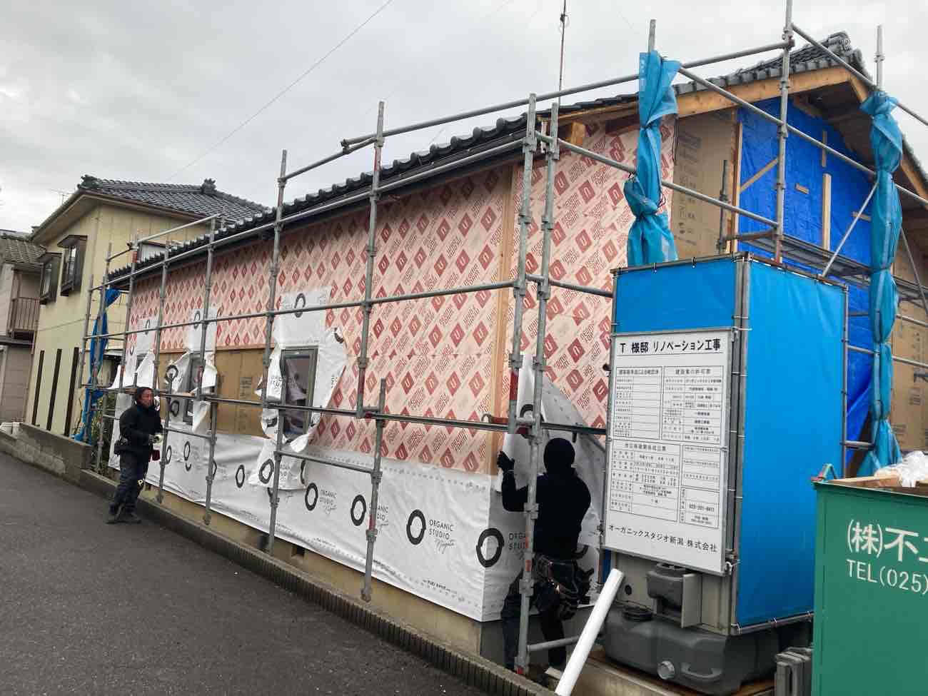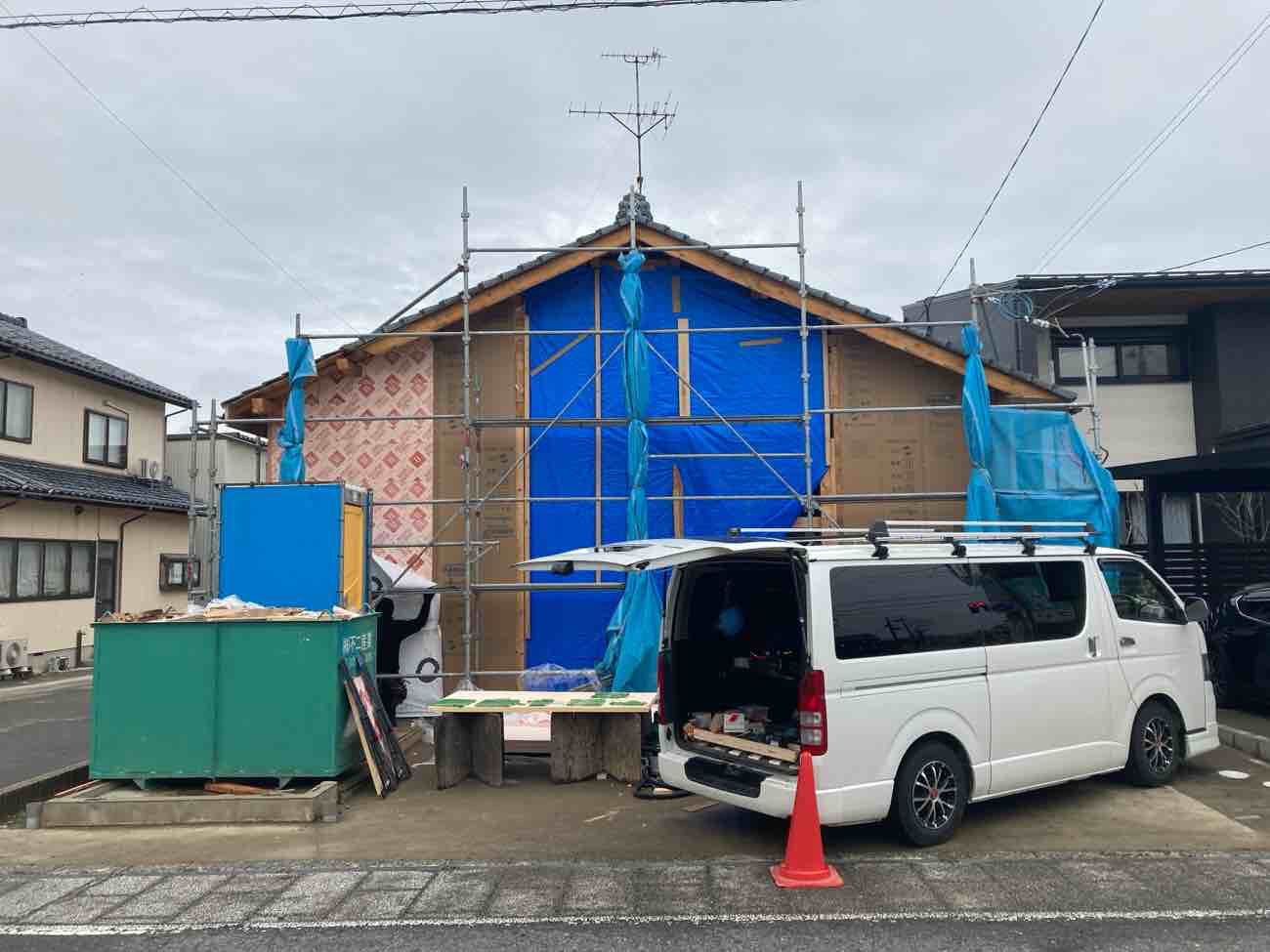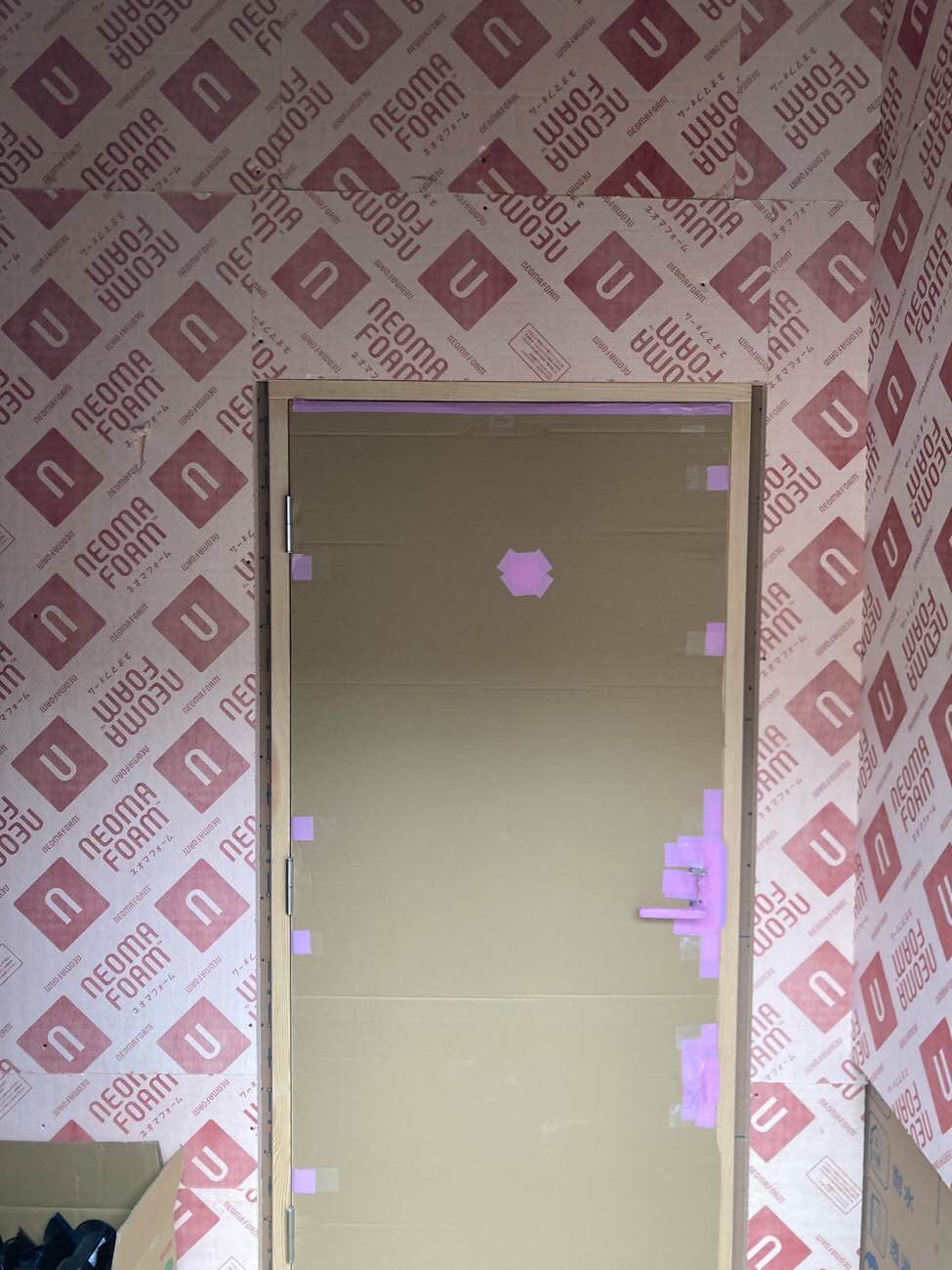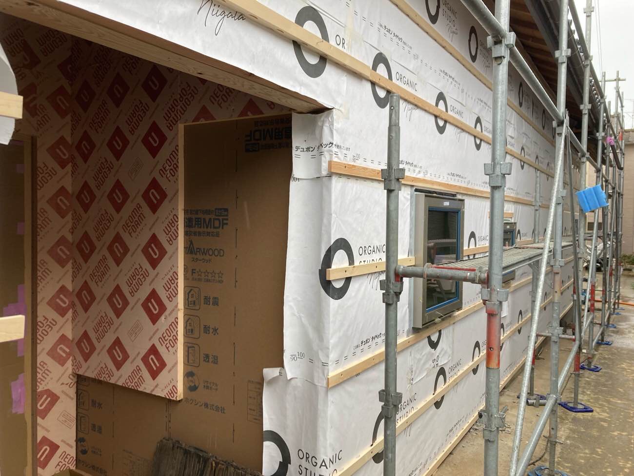 「白山浦のリノベーション」壁付加断熱と防水 2026.02.26 ゲンバLIVE! 刈谷 裕樹 「白山浦のリノベーション」では、壁付加断熱および防水工事が進んでいます。 外壁面に施工しているのは、35mm厚のネオマフォーム。 断熱性能の高い材料ですが、水分には注意が必要なため、 天候の良い日を選び、施工可能な範囲を一気に貼り進めています。 断熱材を貼り終えた後は、間を空けずに透湿防水シートを施工しています。 現場監督 刈谷 裕樹 建築部 二級建築士 Xでシェア Facebookでシェア