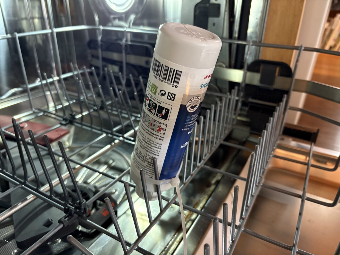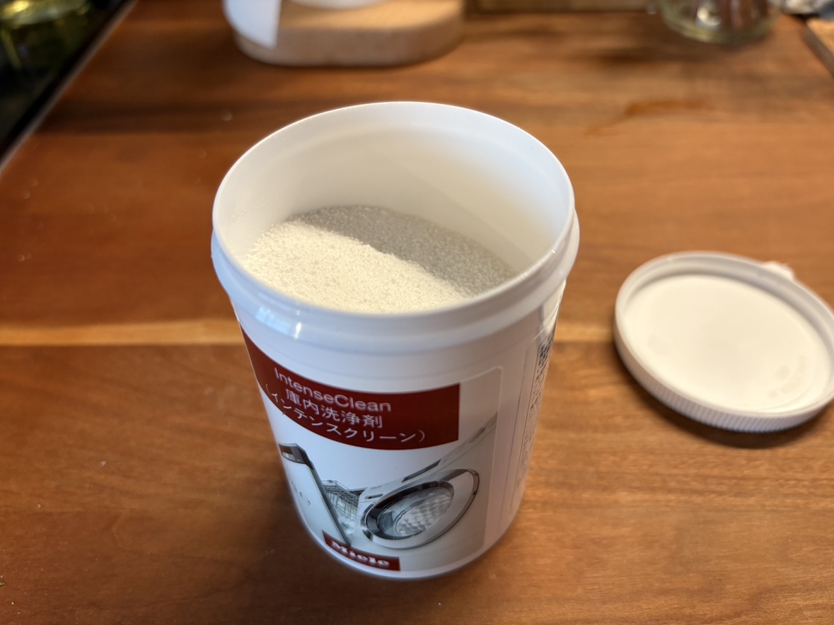 こちらは固形タイプで、かごに差し込んで55℃以上の温水プログラムで運転します。