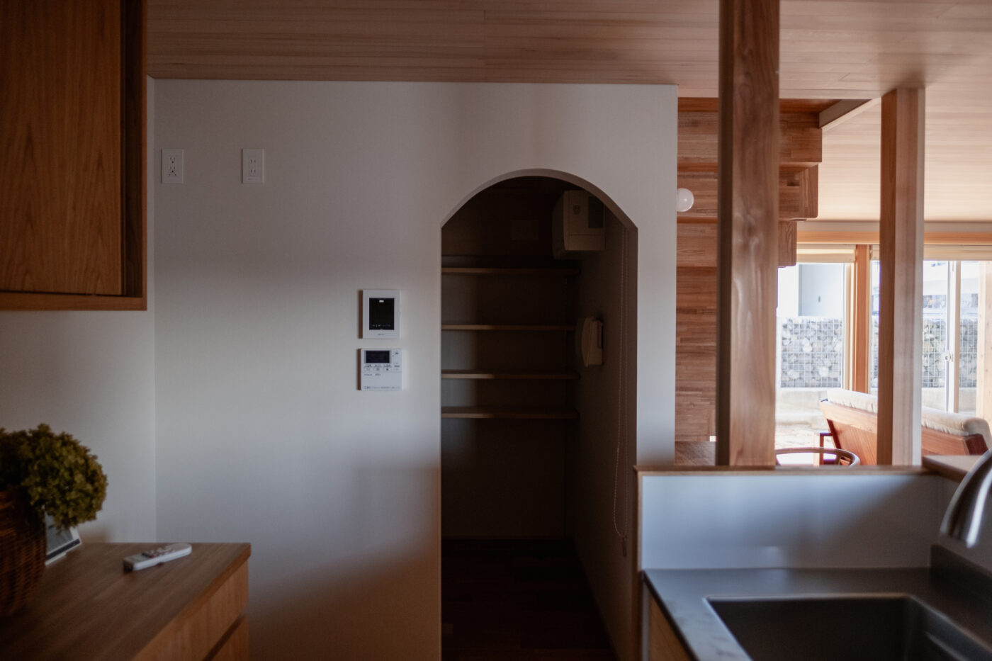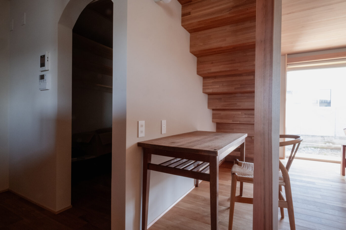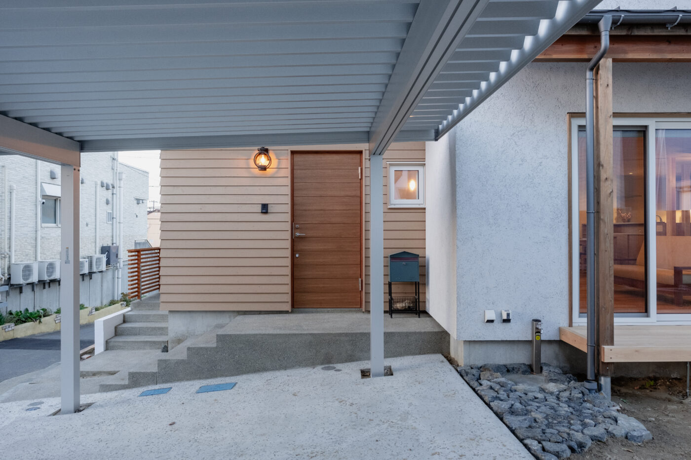 来客が迷わないよう、住宅の玄関は正面に出てこないよう配慮しました。