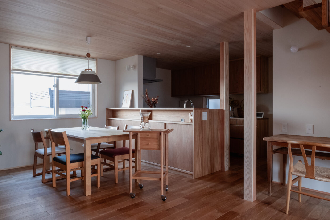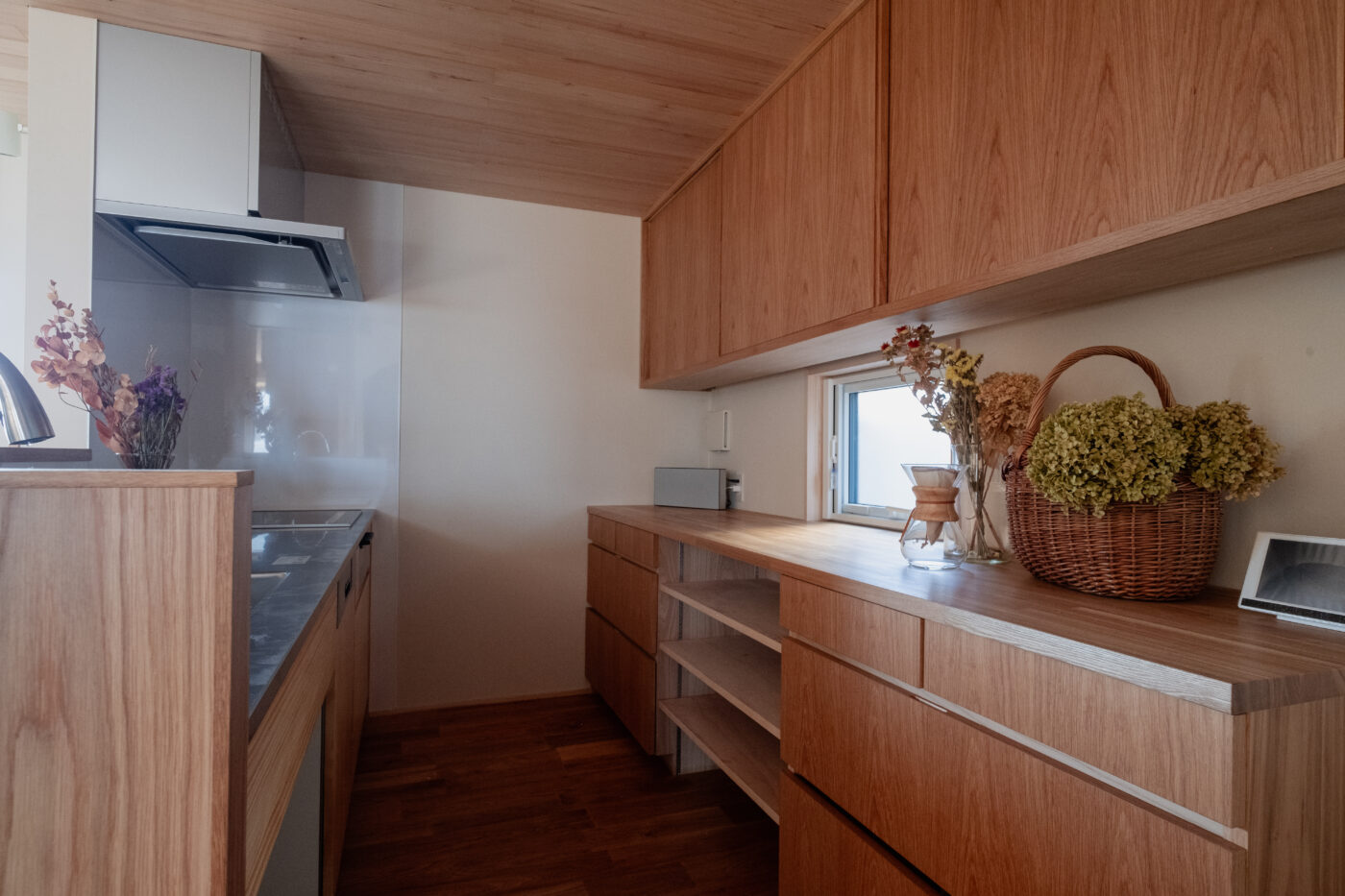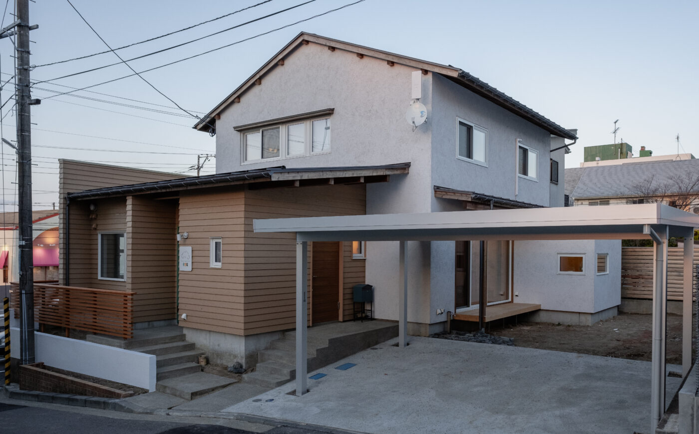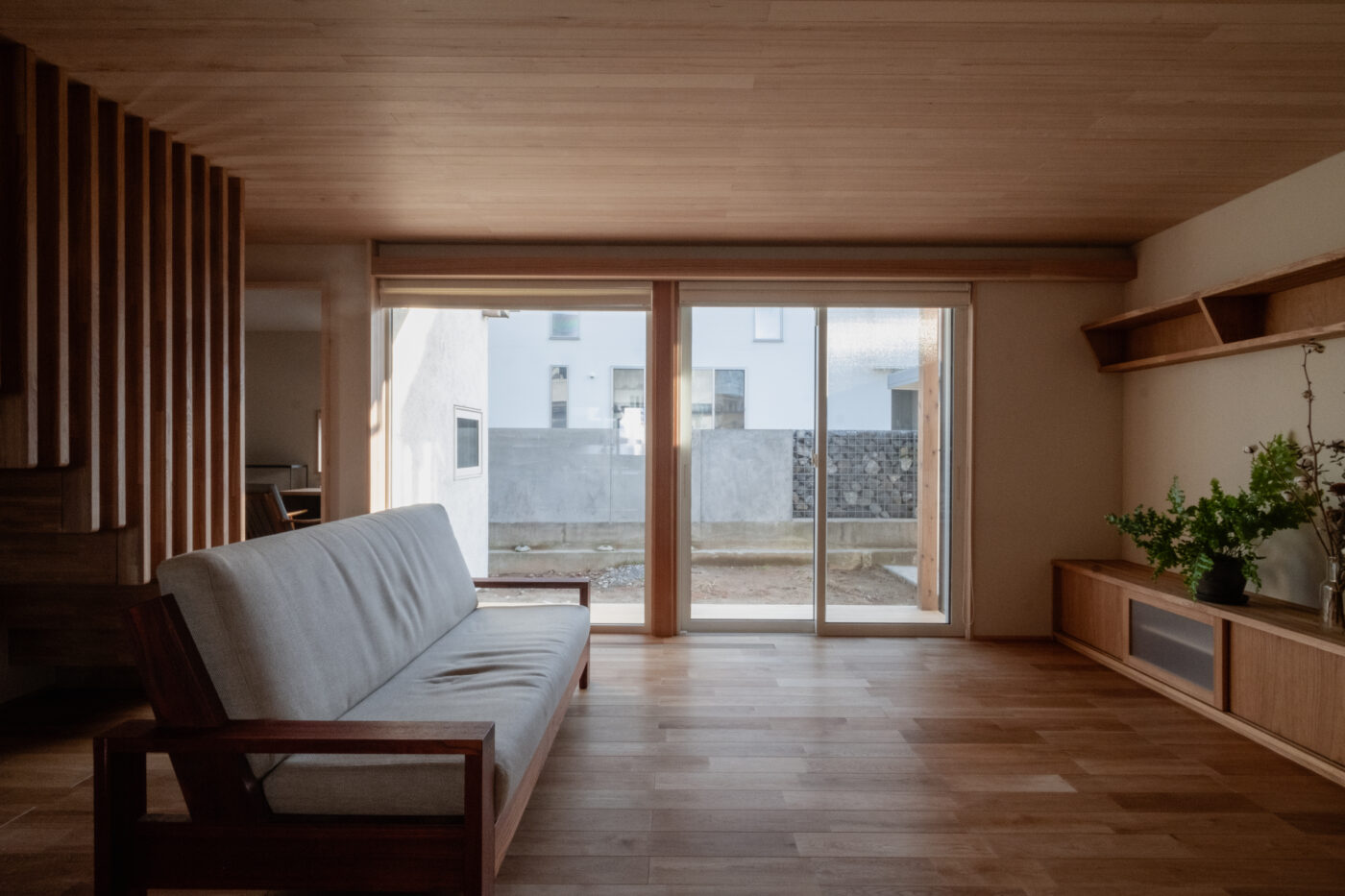 店舗部分は下屋として建物と一体化しながらも、住宅部分とは断熱境界で分離することで、音やプライバシーを切り離し、住空間と働く空間を両立させました。