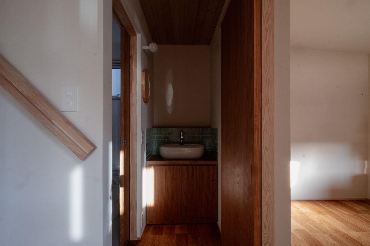 2階にはゆとりある水回りとウォークスルークローゼットを設け、回遊動線を確保。