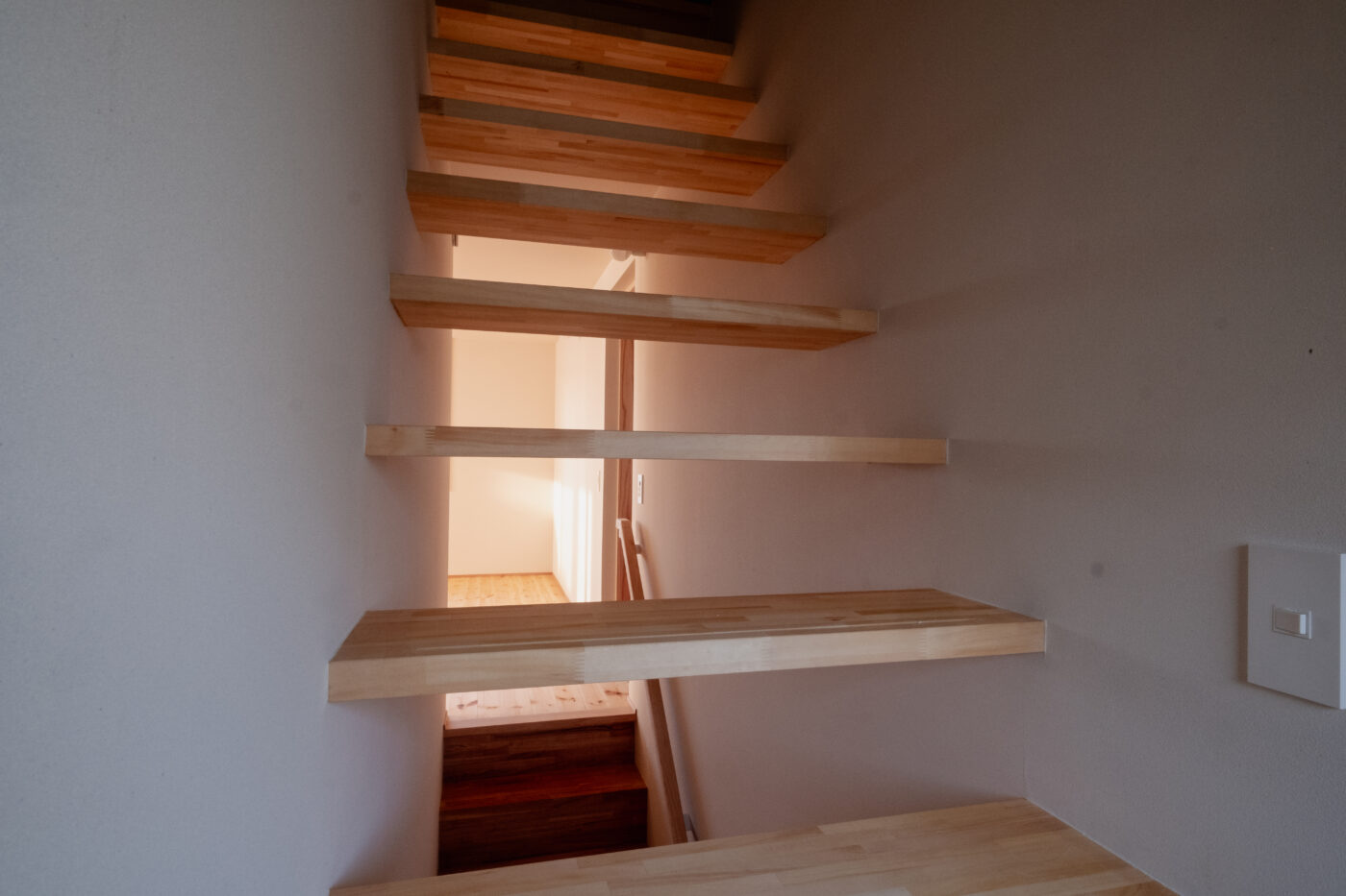 ロフトへの階段はスケルトンにし、光と冷房時には冷気を1階まで届けます。