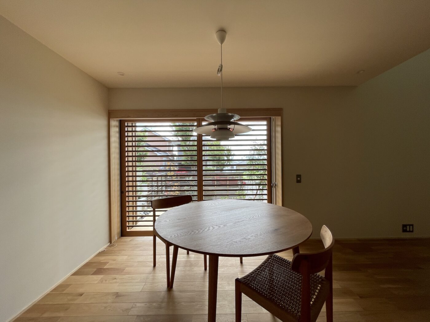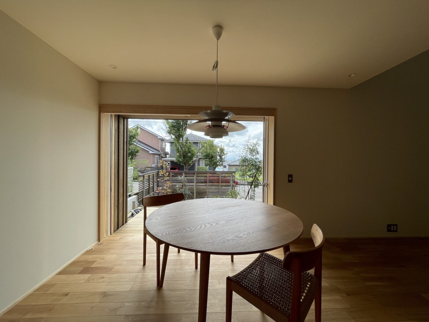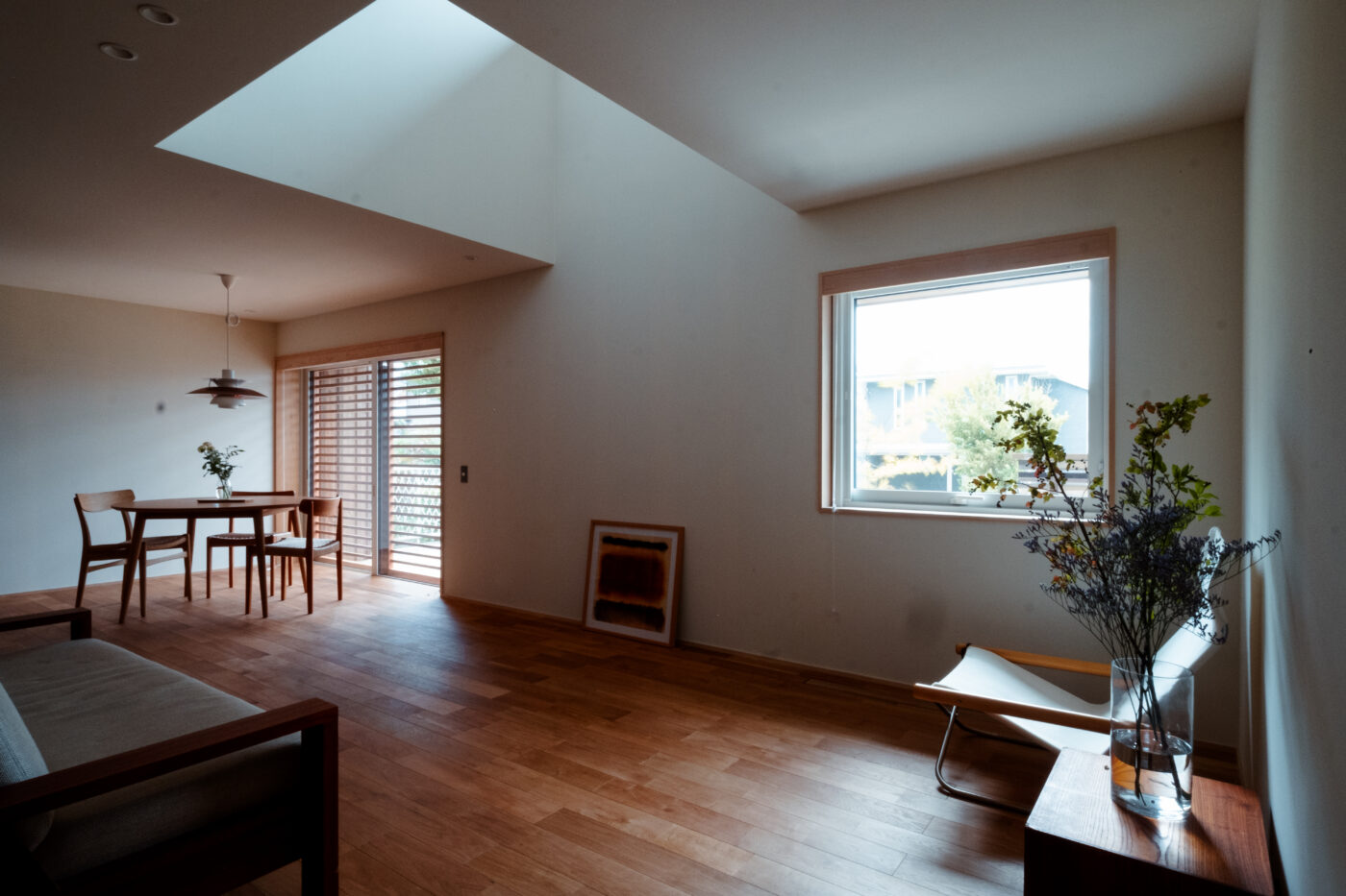 - ダイニングは大開口から光と風をたっぷりと取り込み、リビングは開口を抑えて落ち着いた空間に。