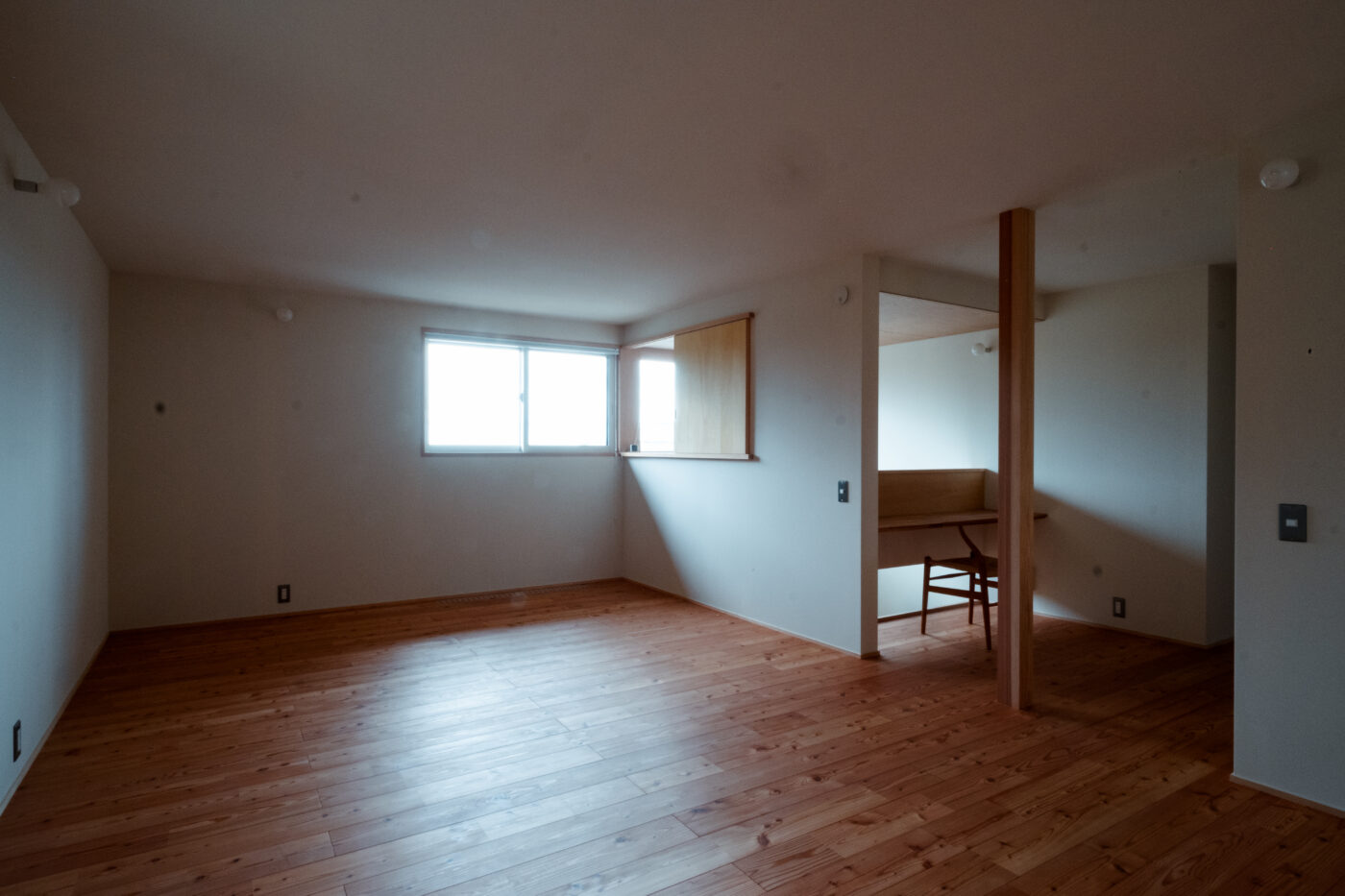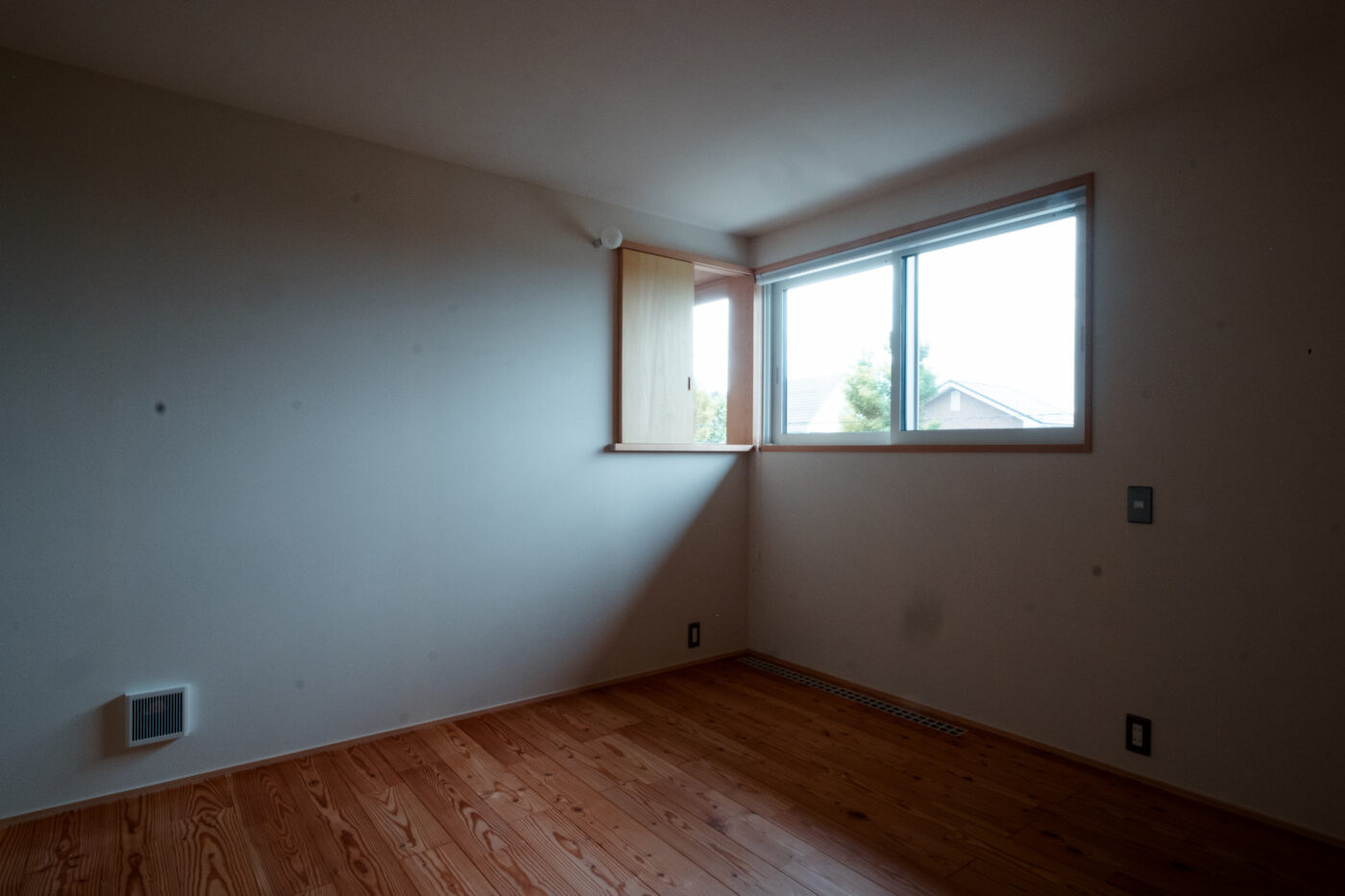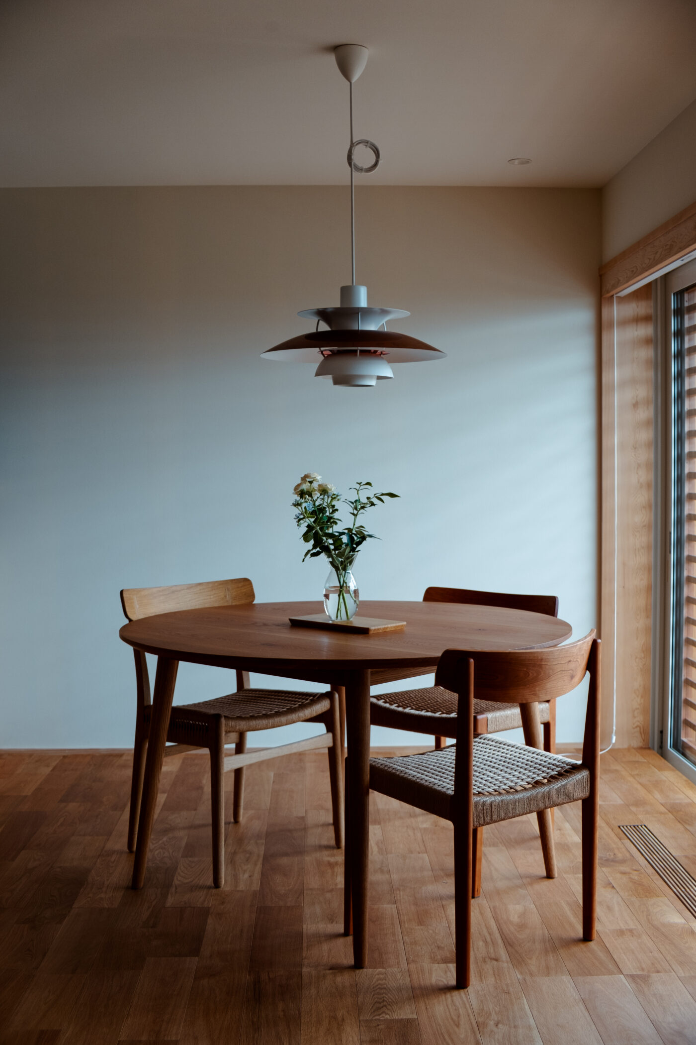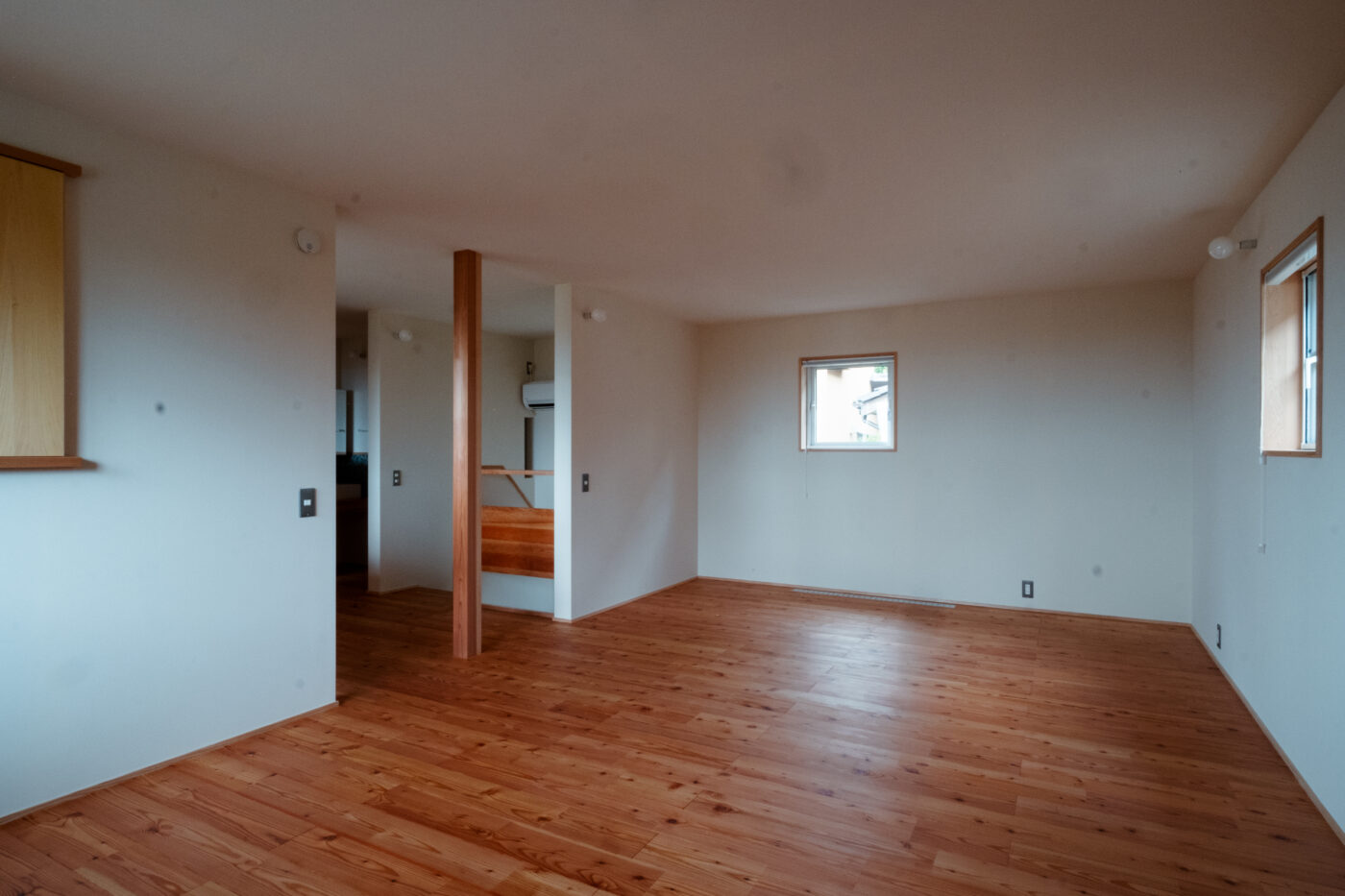 冬は床下エアコン、夏は2階の壁掛けエアコンによる1台ずつの空調計画で、UA値0.27の高断熱性能が一年を通して快適な室内環境を実現します。