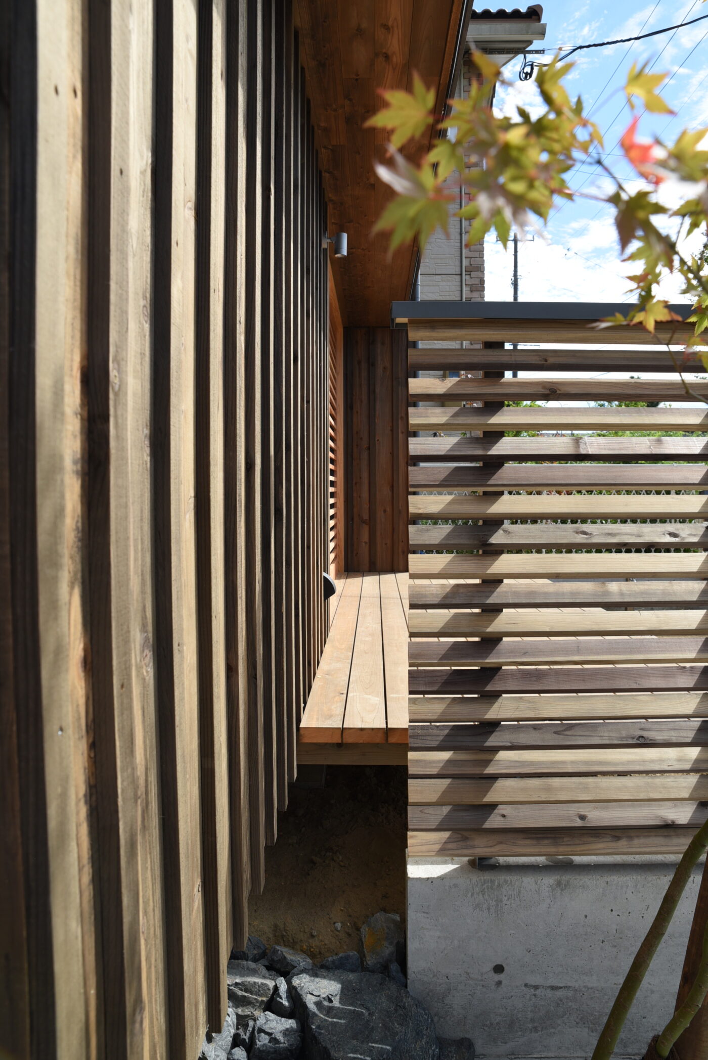 ファサードには視線と採光を調整するガラリ戸を設け、開放感とプライバシーを両立。