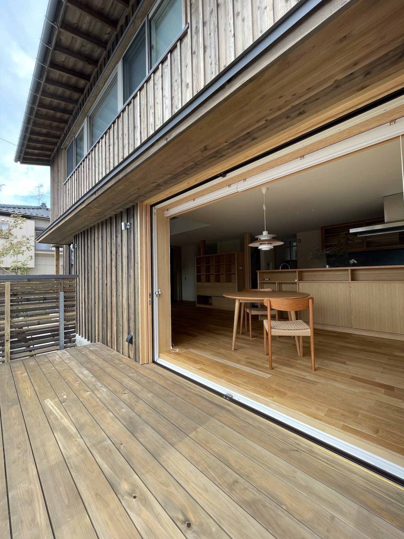 ウッドデッキにつながるフルオープンサッシ「五十嵐三の町の家」