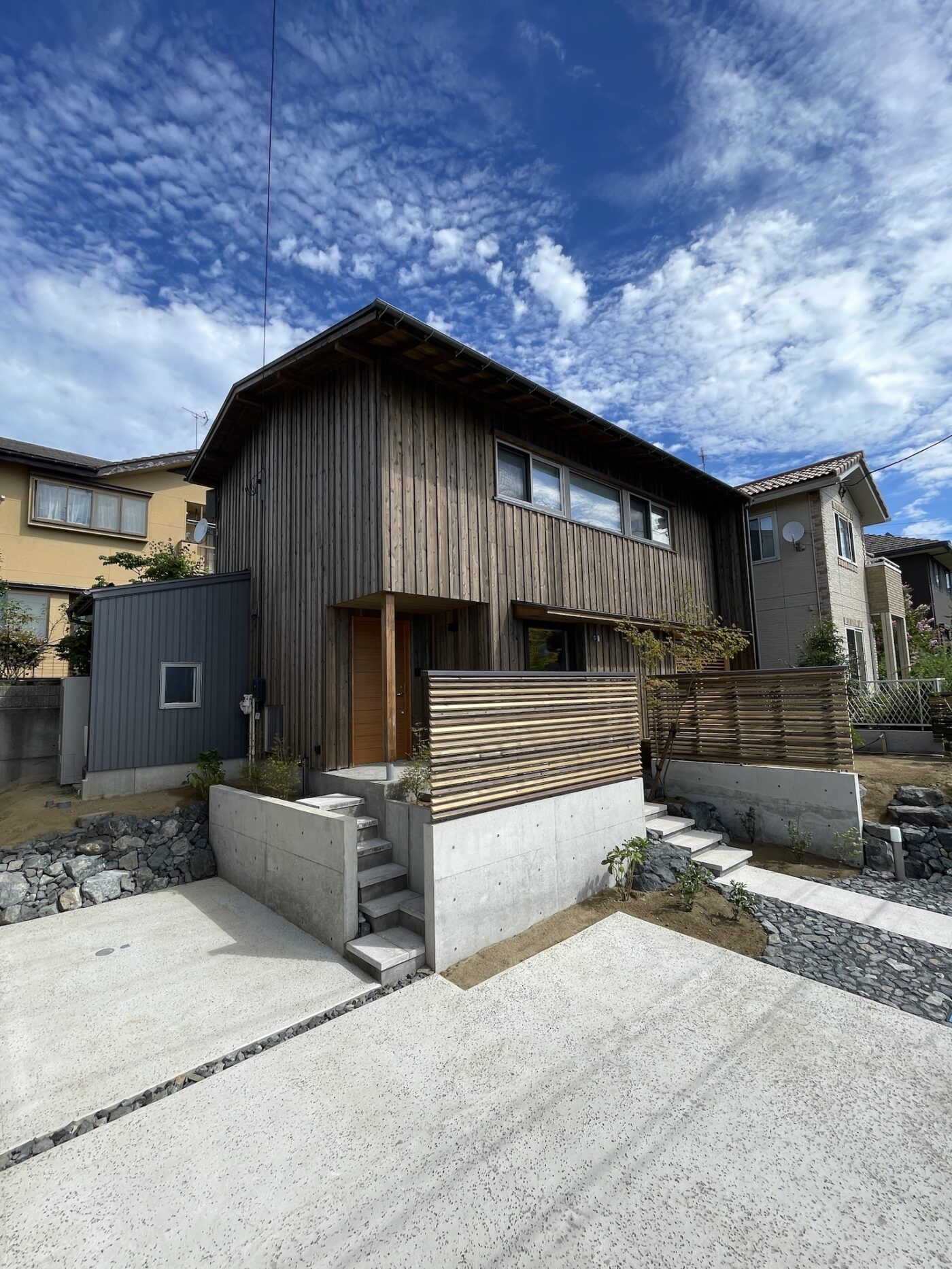 敷地の高低差を利用した設計で、日常に自然とつながる特別な時間を提供する住まいです。