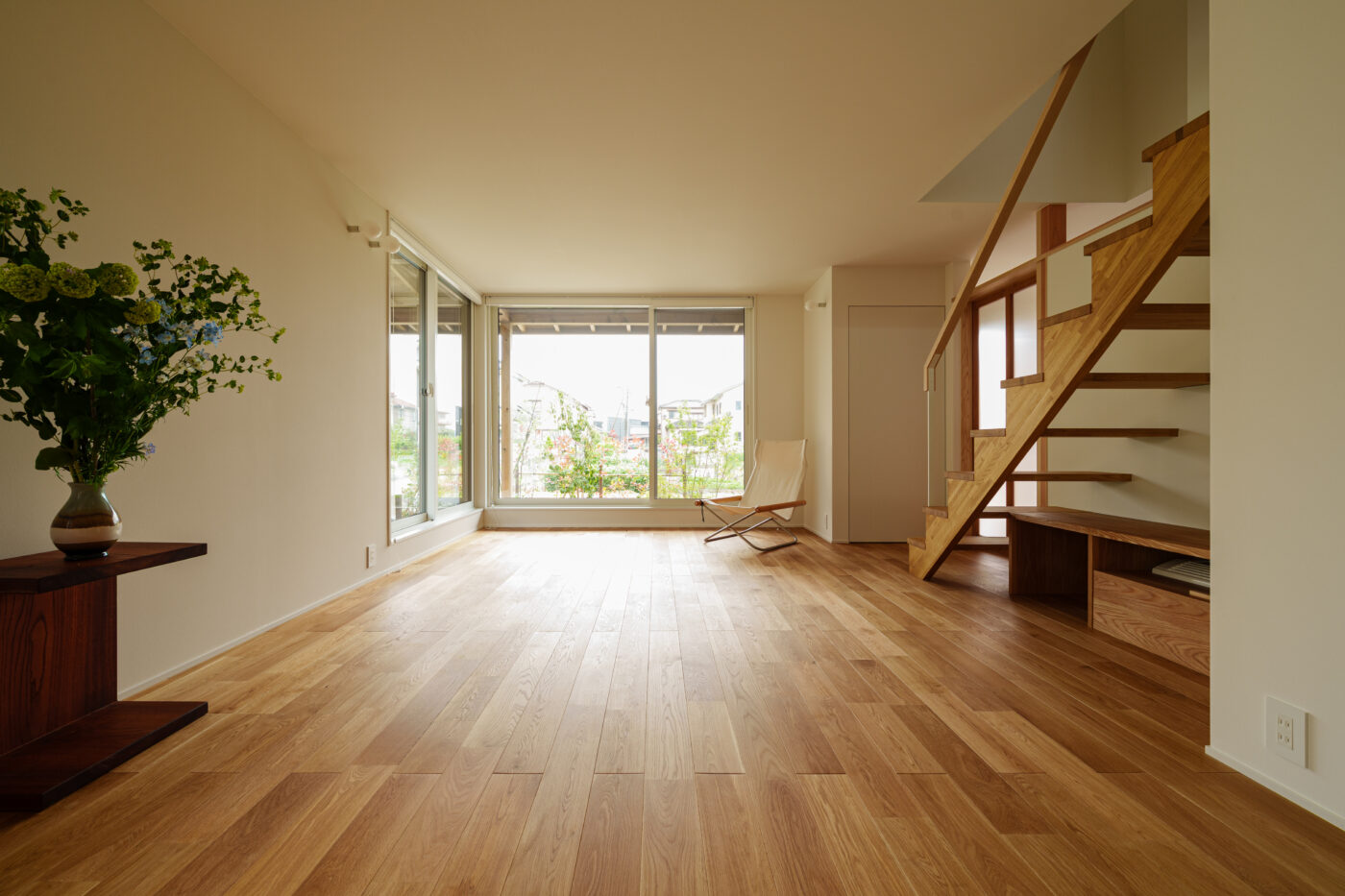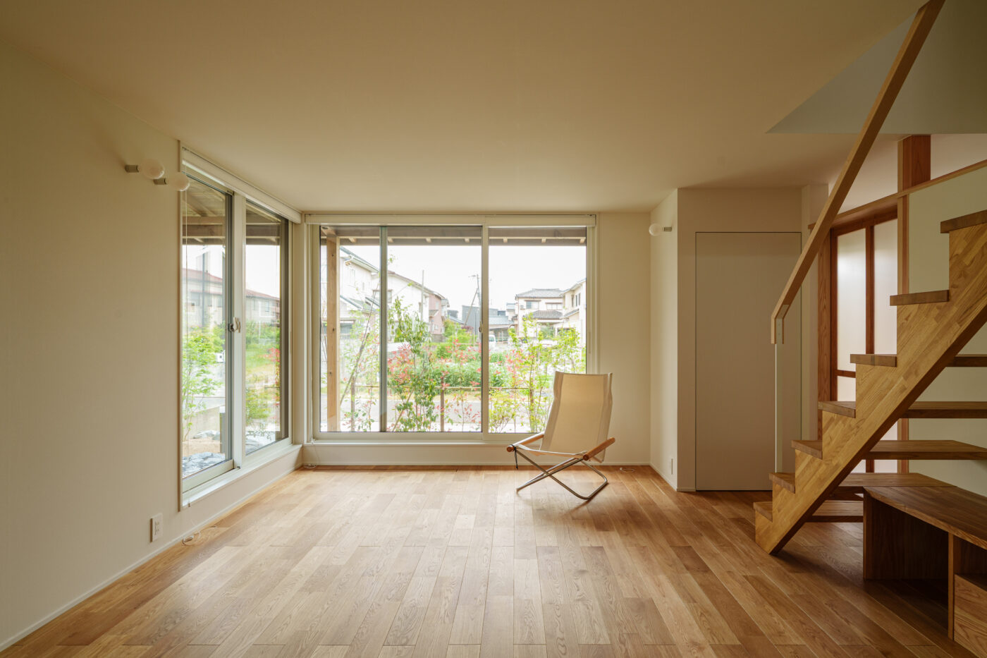 家の中と外がひとつにつながることで、敷地以上の広がりを感じられる住まいです。