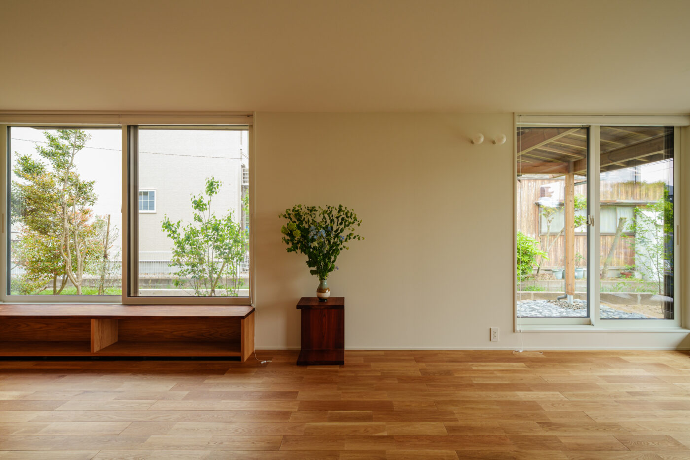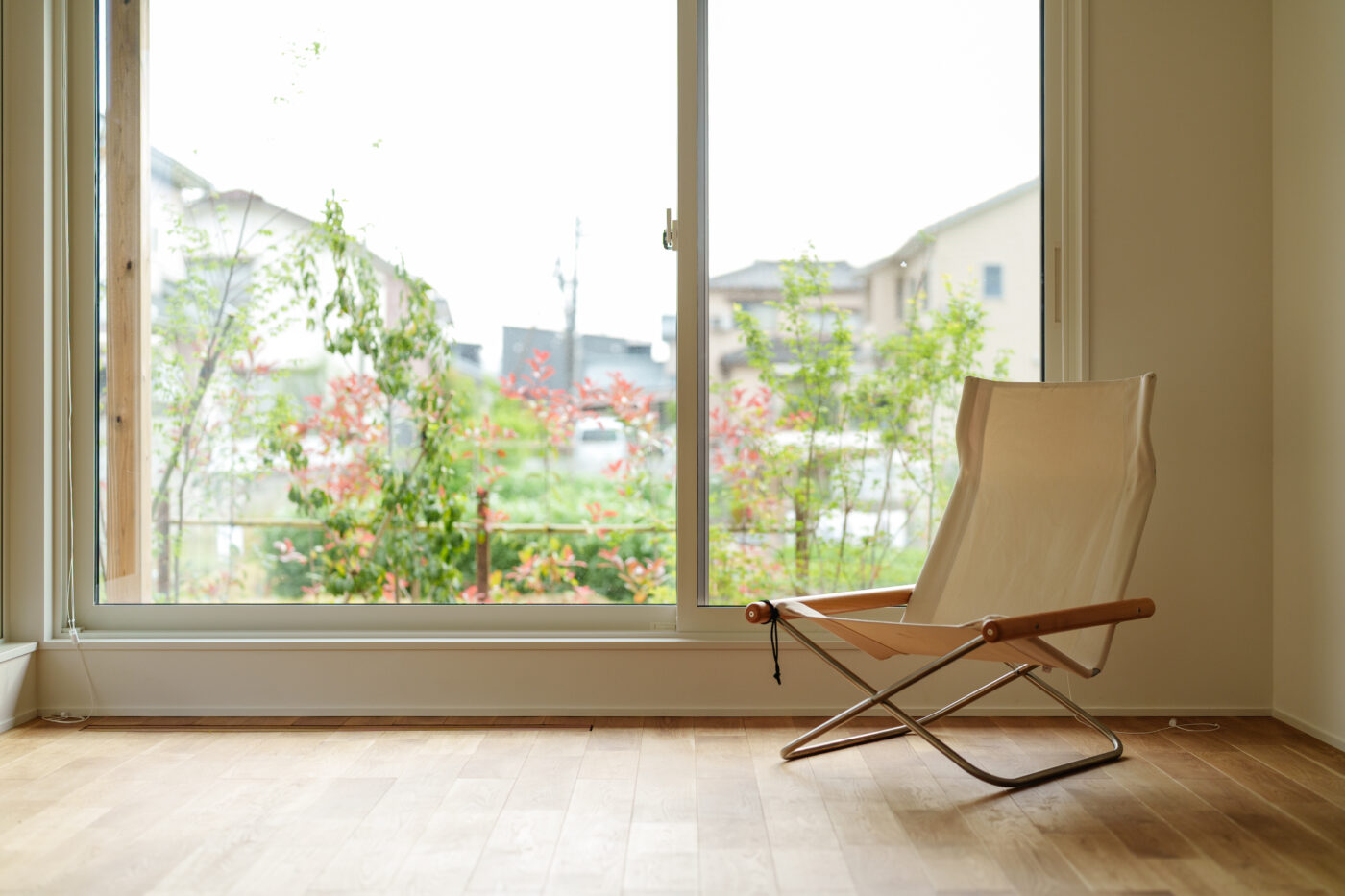 収納によって生まれた室内の余白は、視線を窓の外へと導きます。