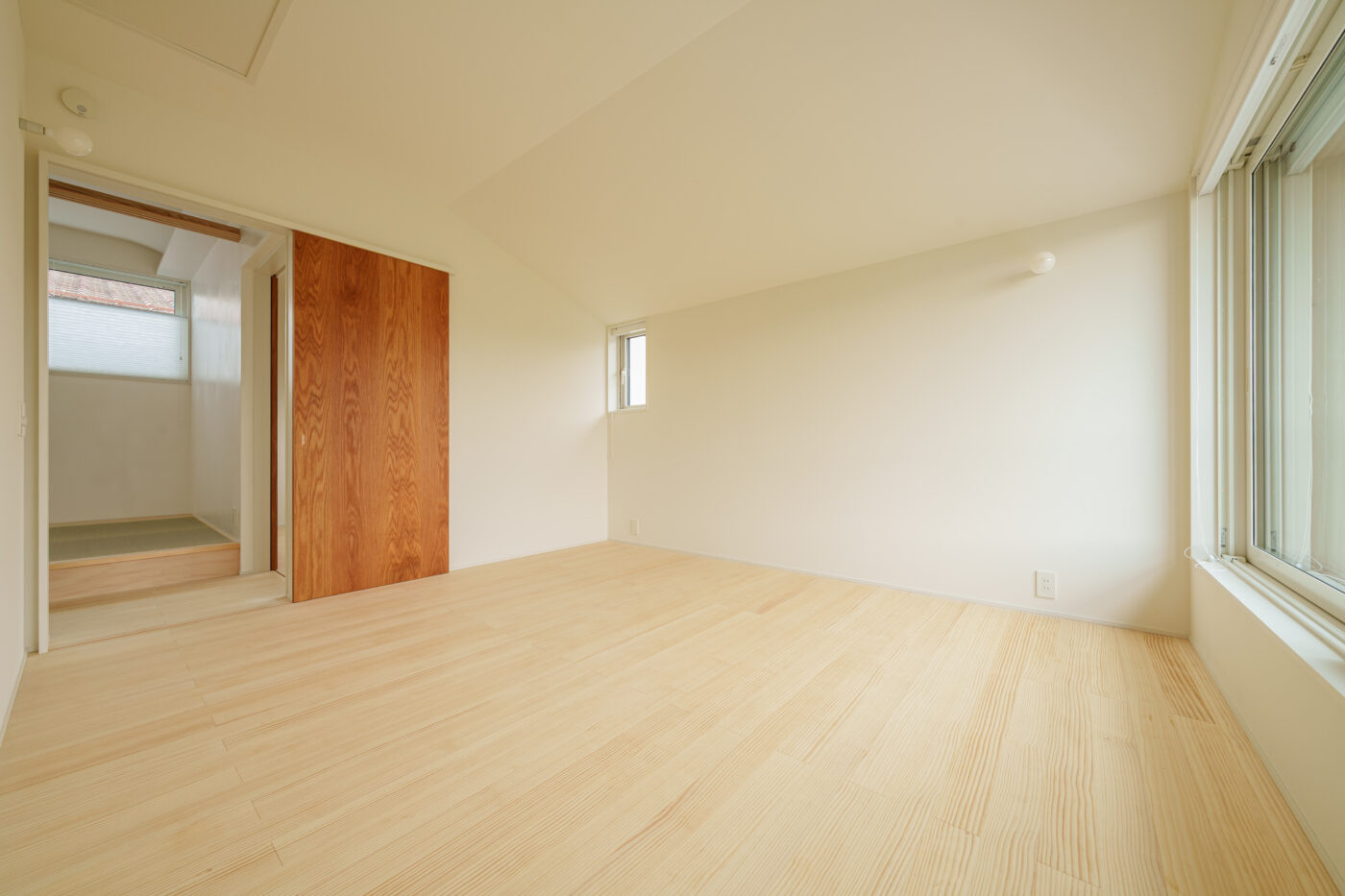 子供室は南側で日当たり良好、寝室はゆったりとした7畳で西側の景色を確保。