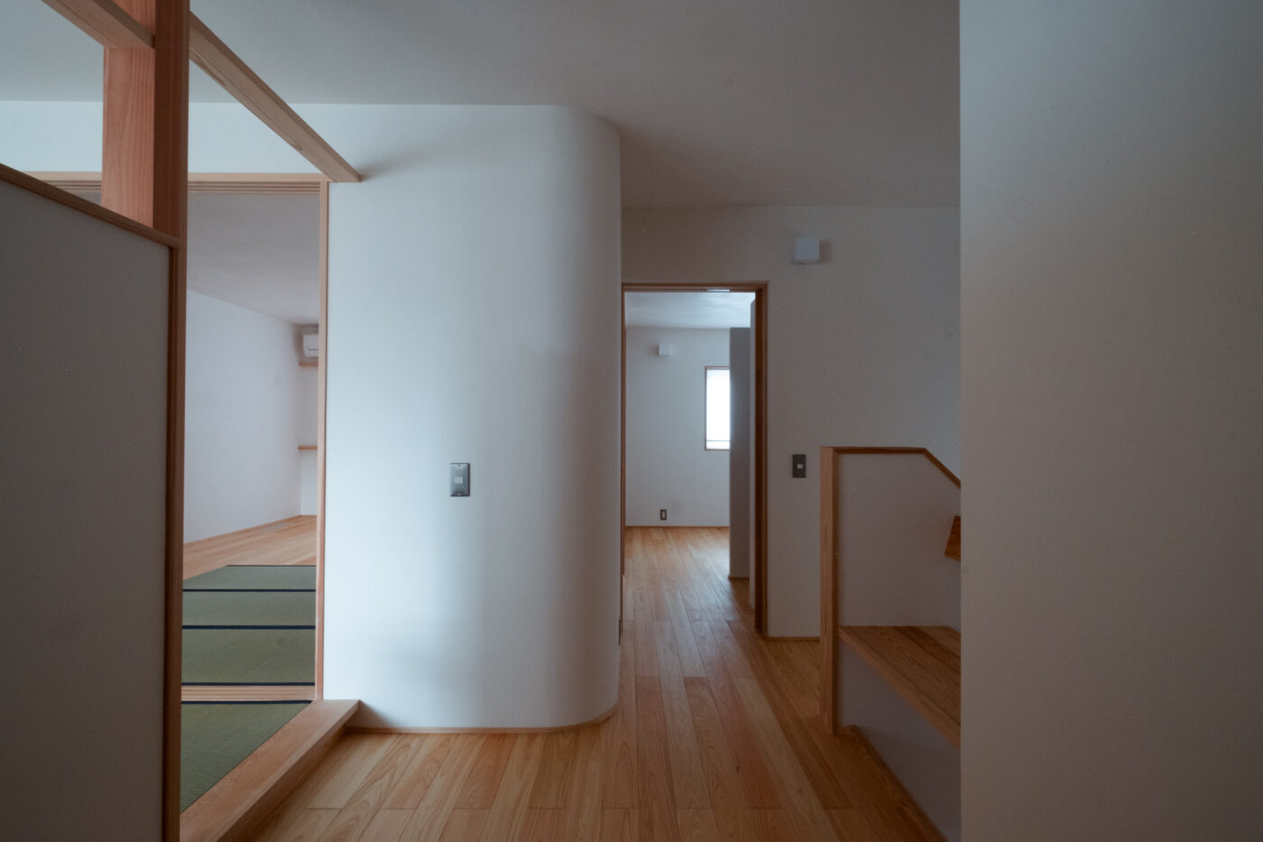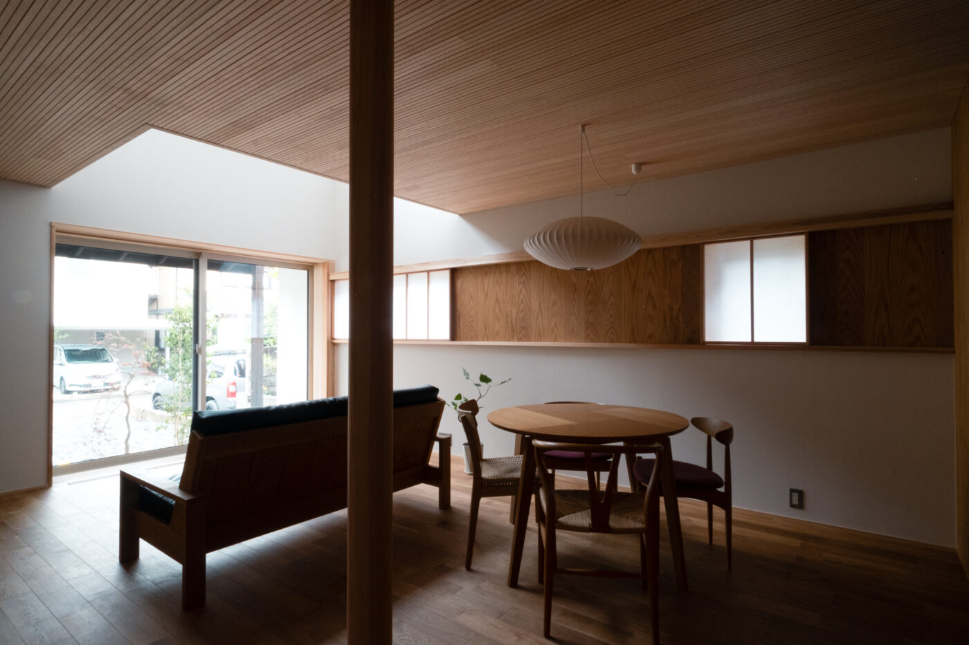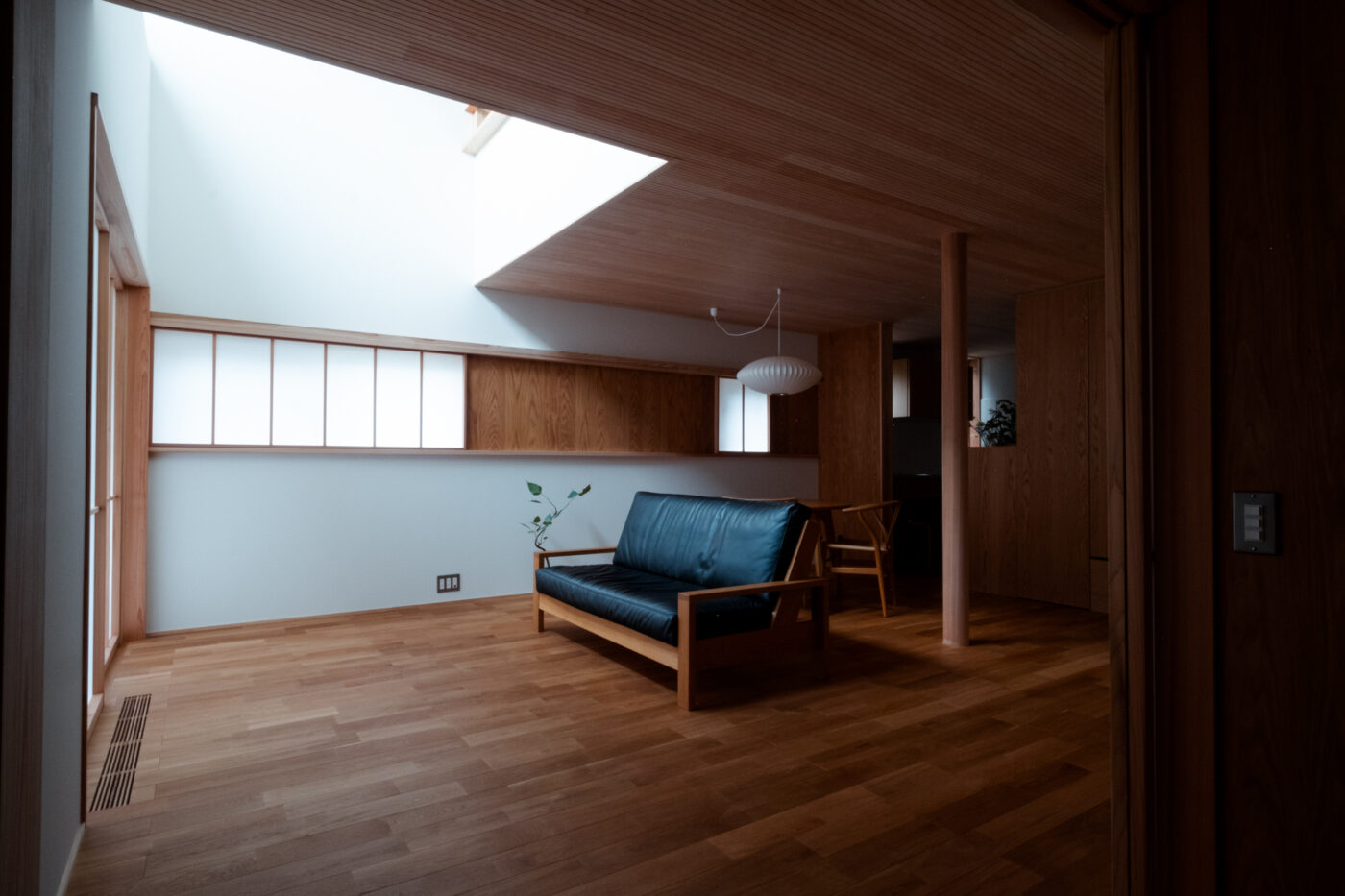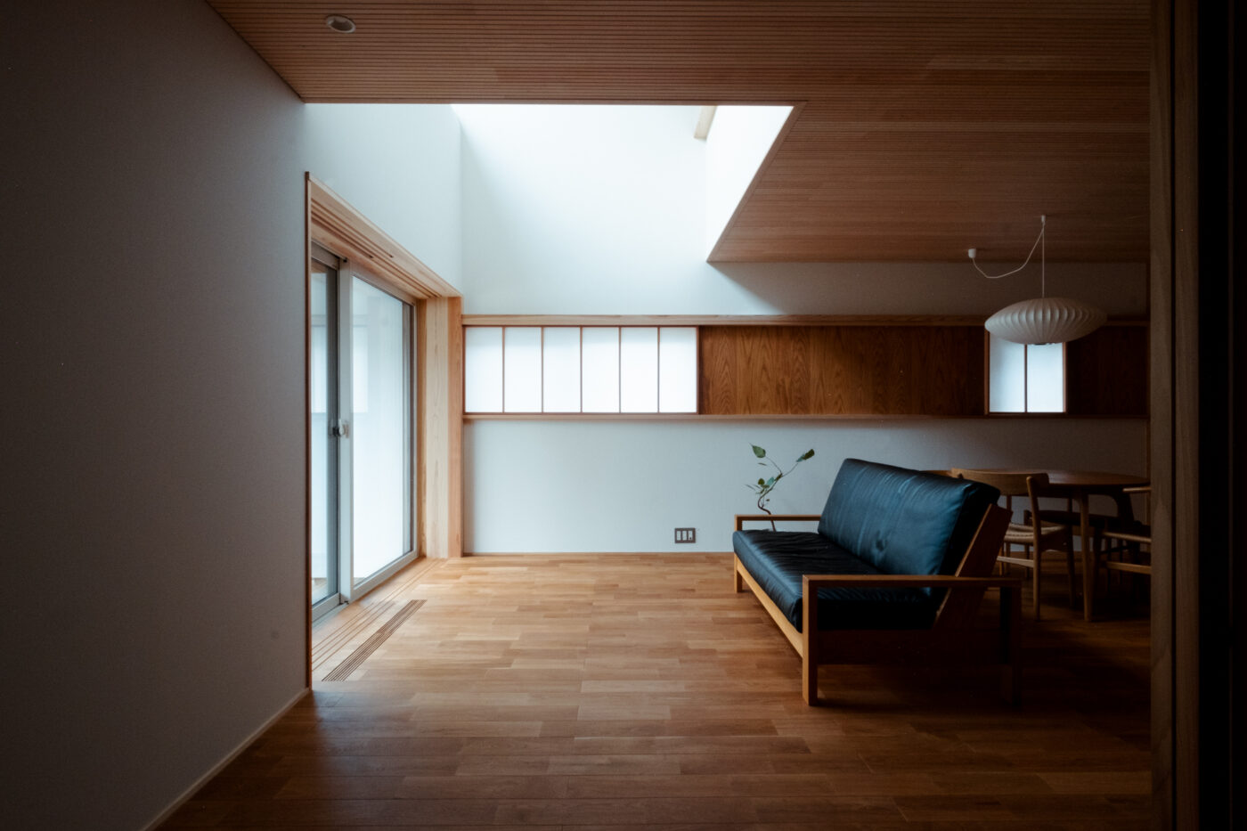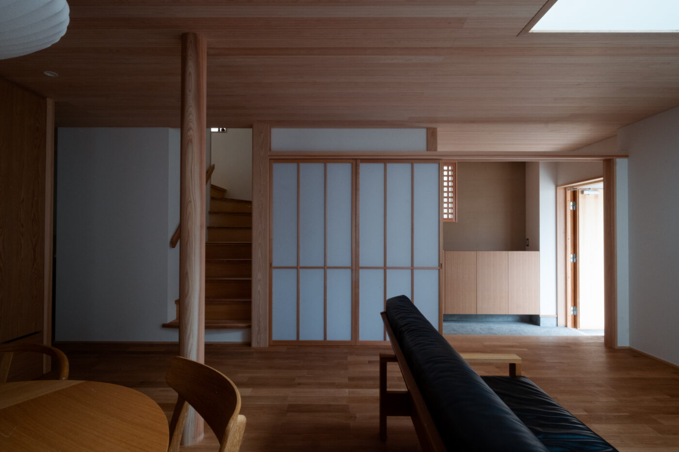 - 見せ場は建具と家具に囲まれる一階の主室と、二階のセカンドリビングに繋がる吹き抜け。
