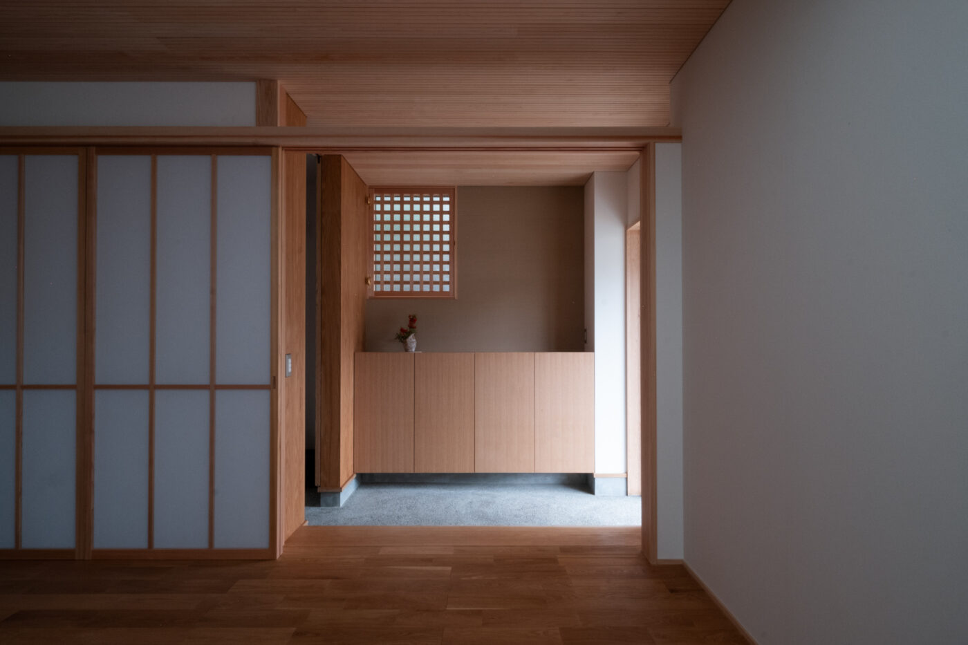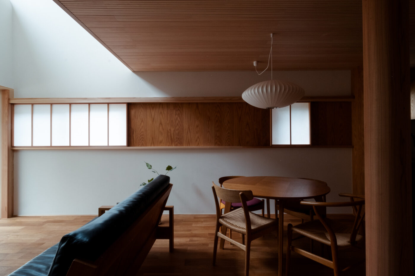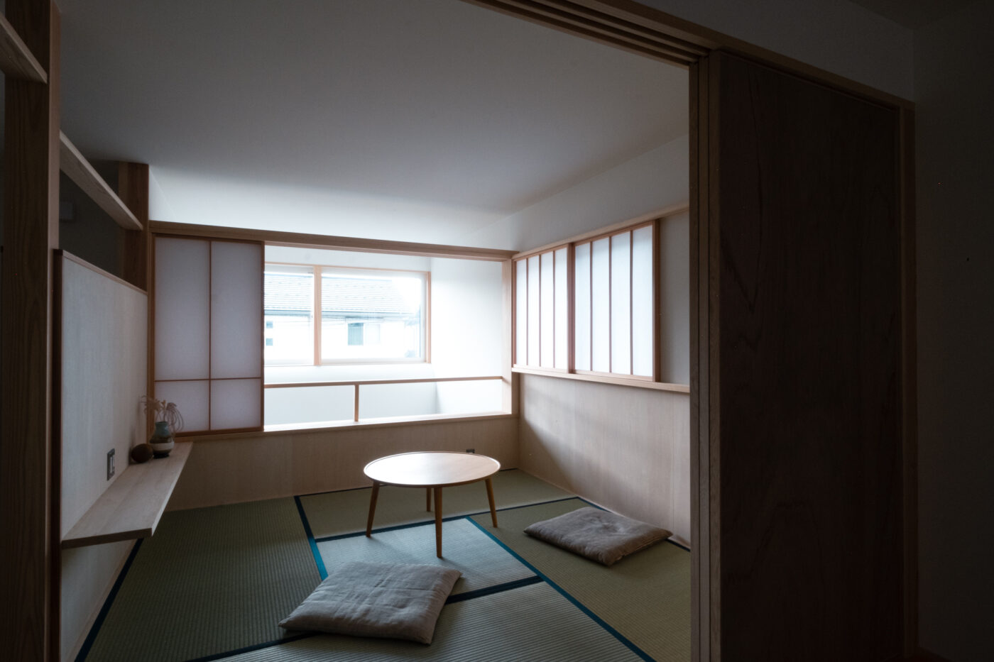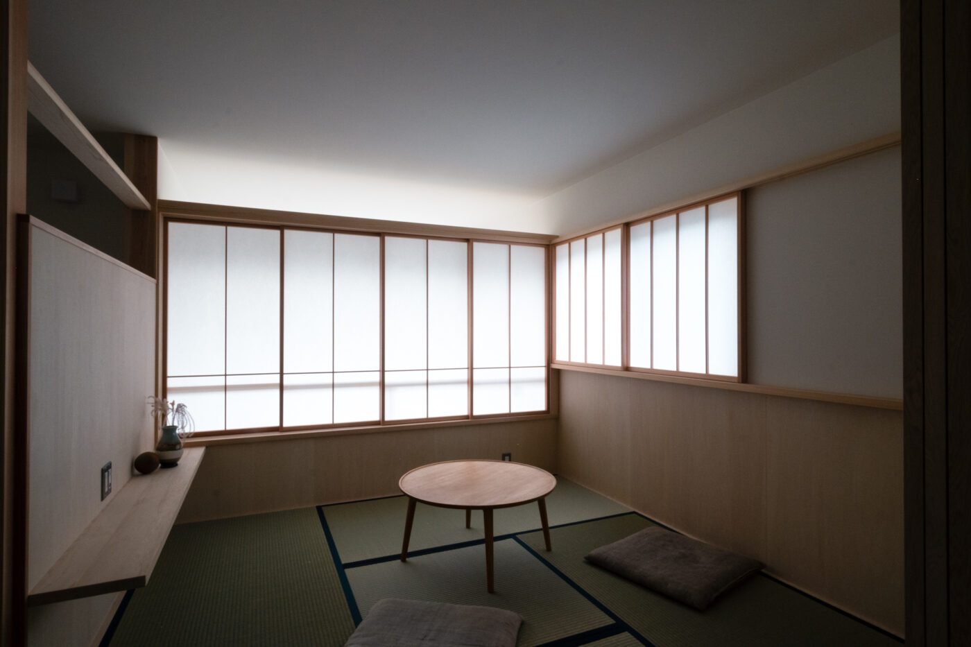 一階の主室は障子戸と造作家具に囲まれ、