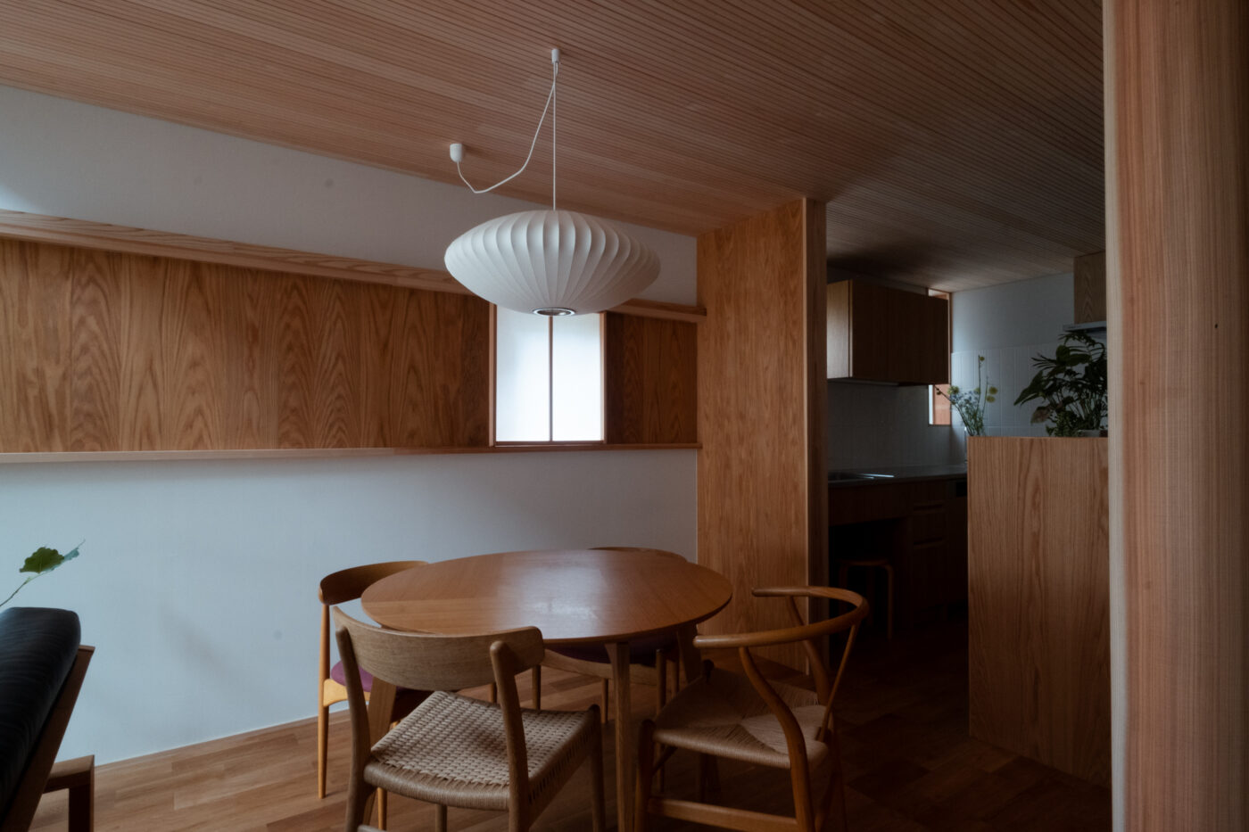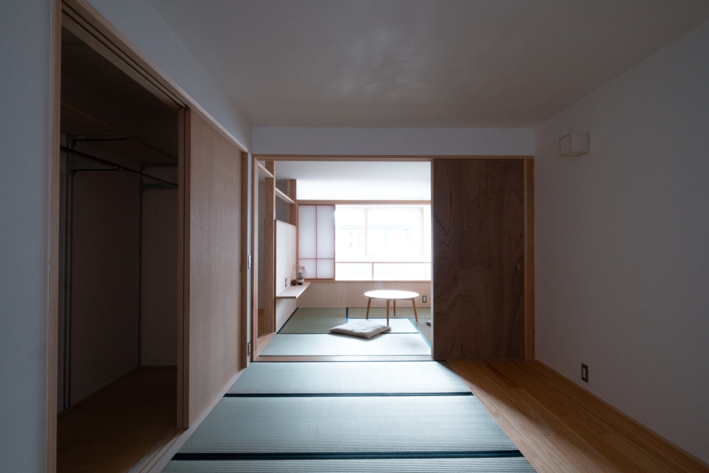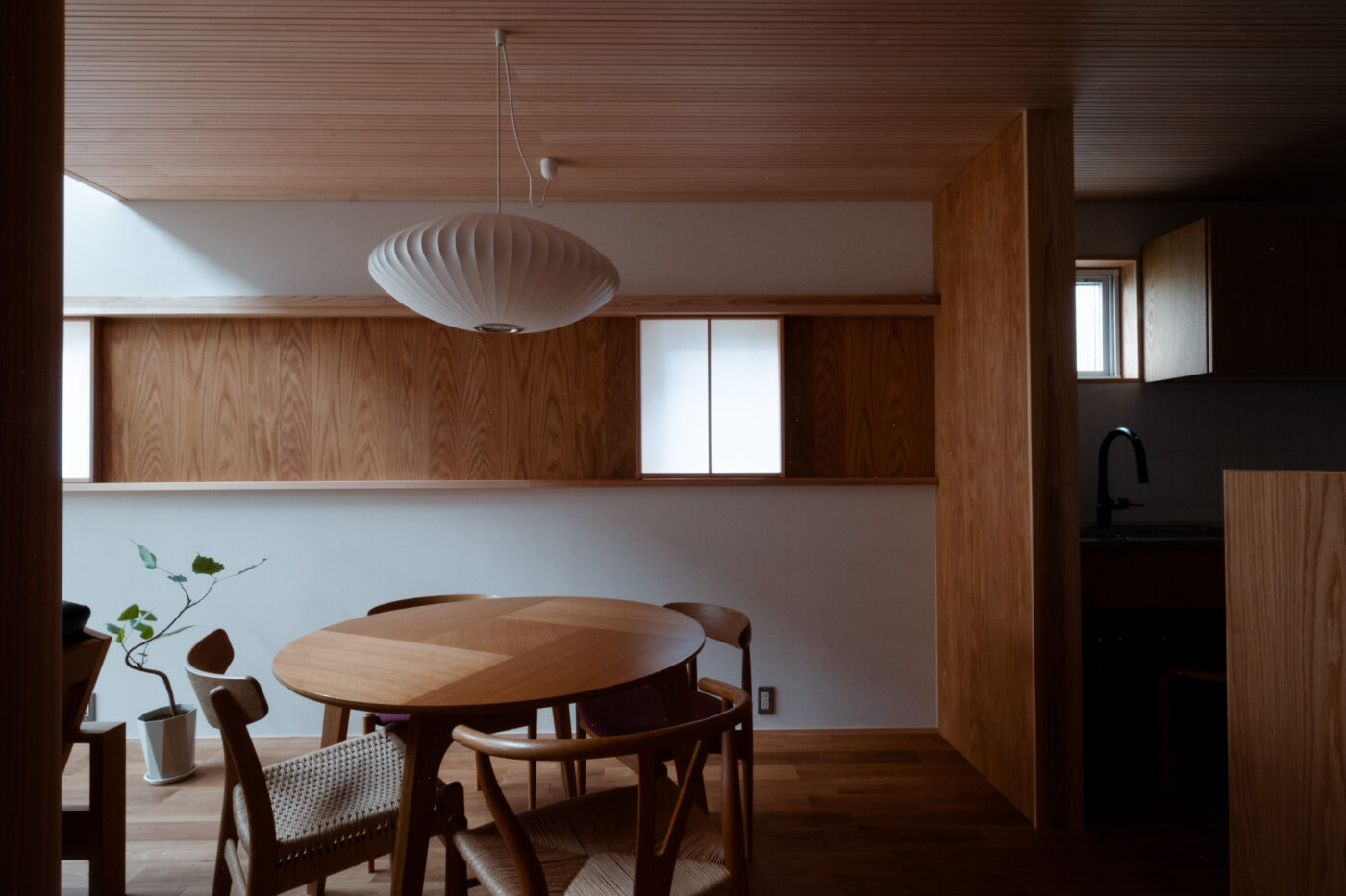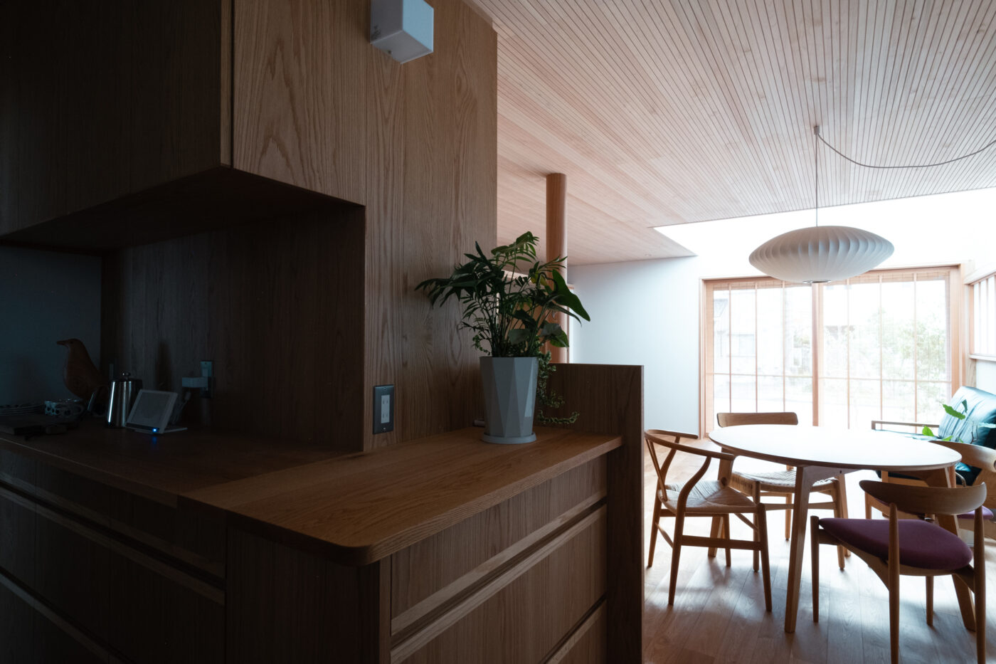 一階の主室は障子戸と造作家具に囲まれ、