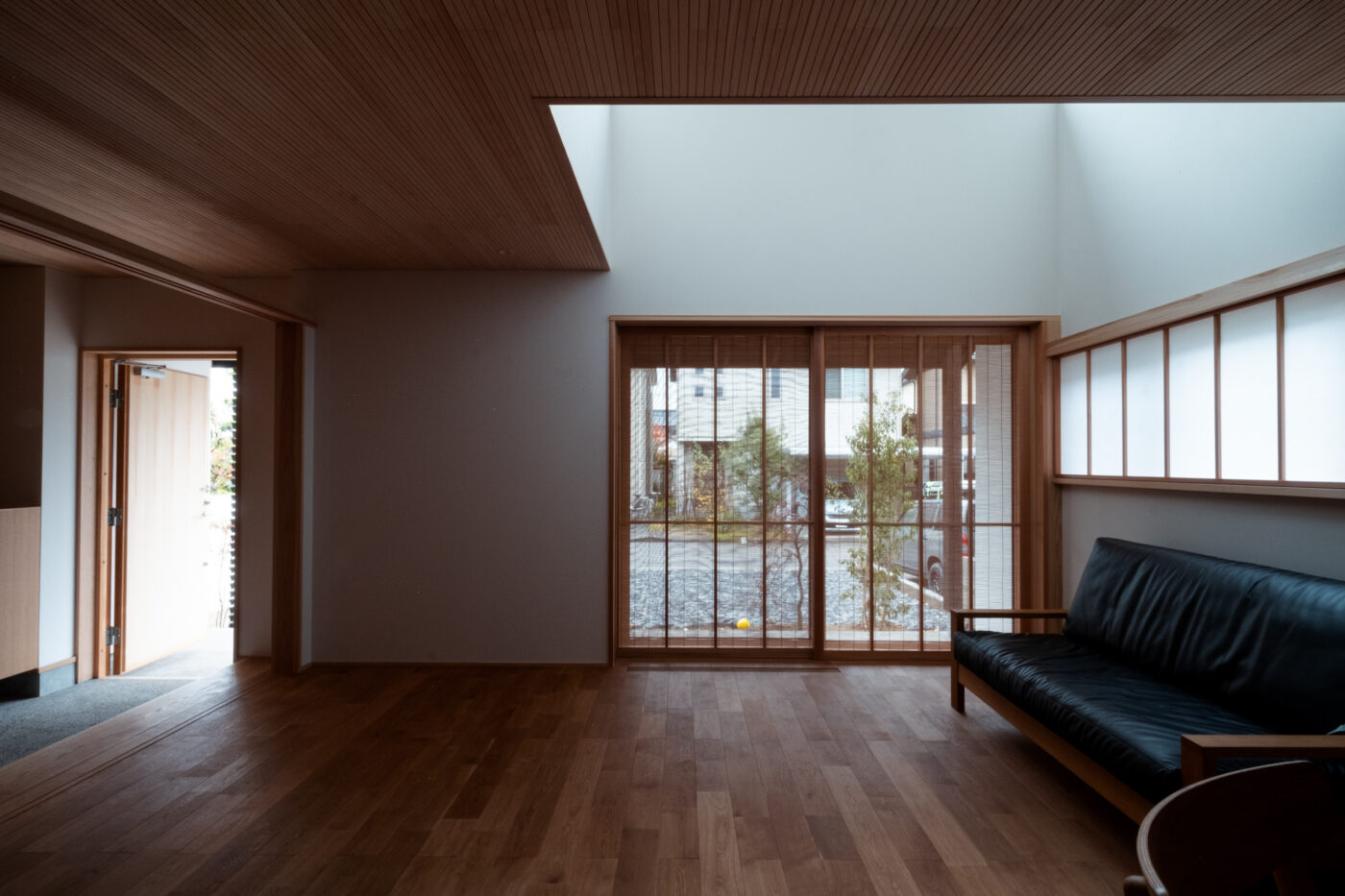 正面の開口部は最小限として、通りに対しては寡黙な表情となっています。
