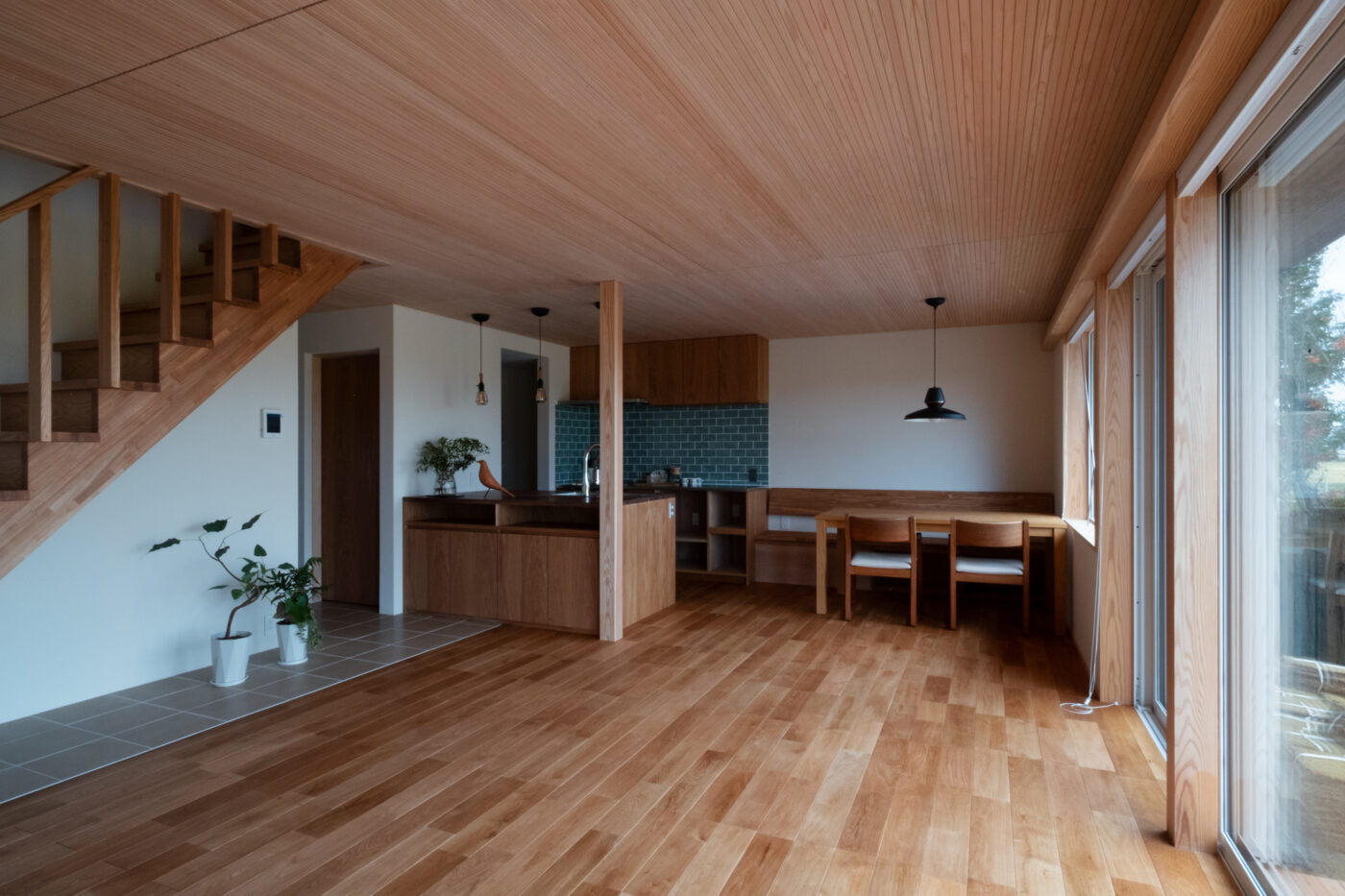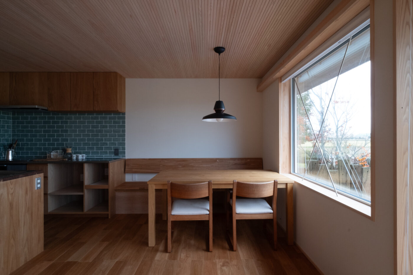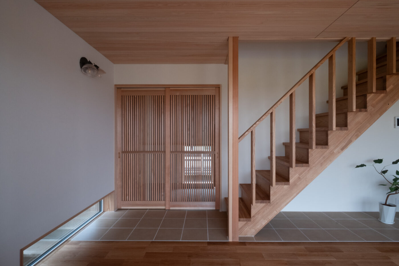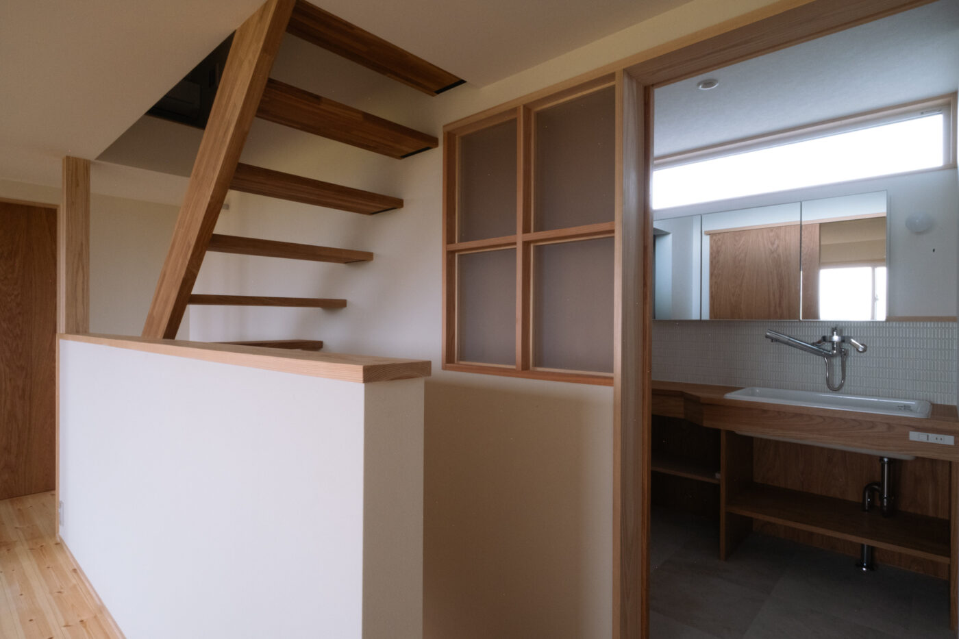 また、愛犬と暮らすため、主室の床は一部タイルを貼り、アプローチに面して家族の帰りを見守れる地窓も設置してみました。