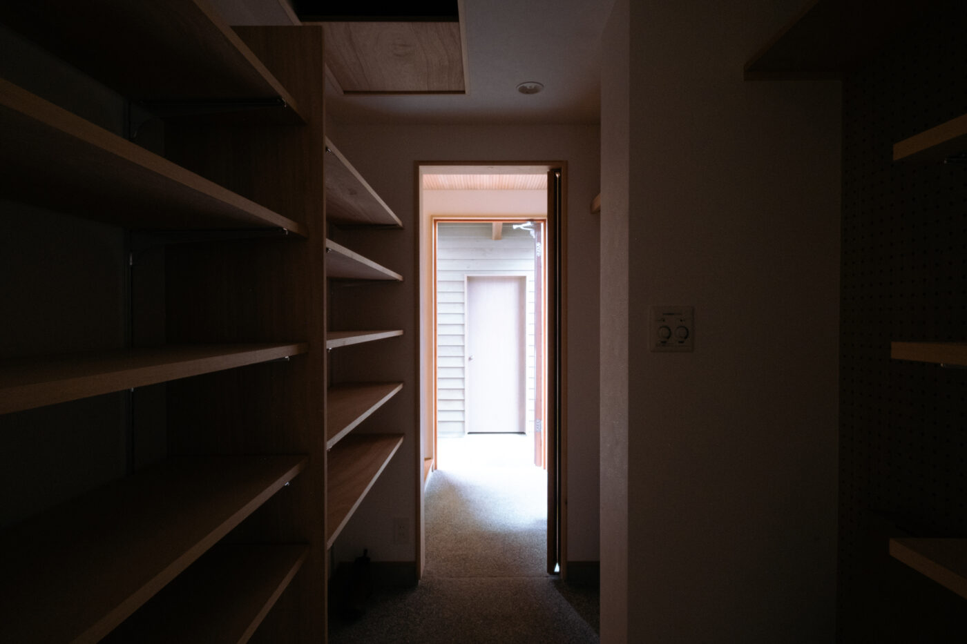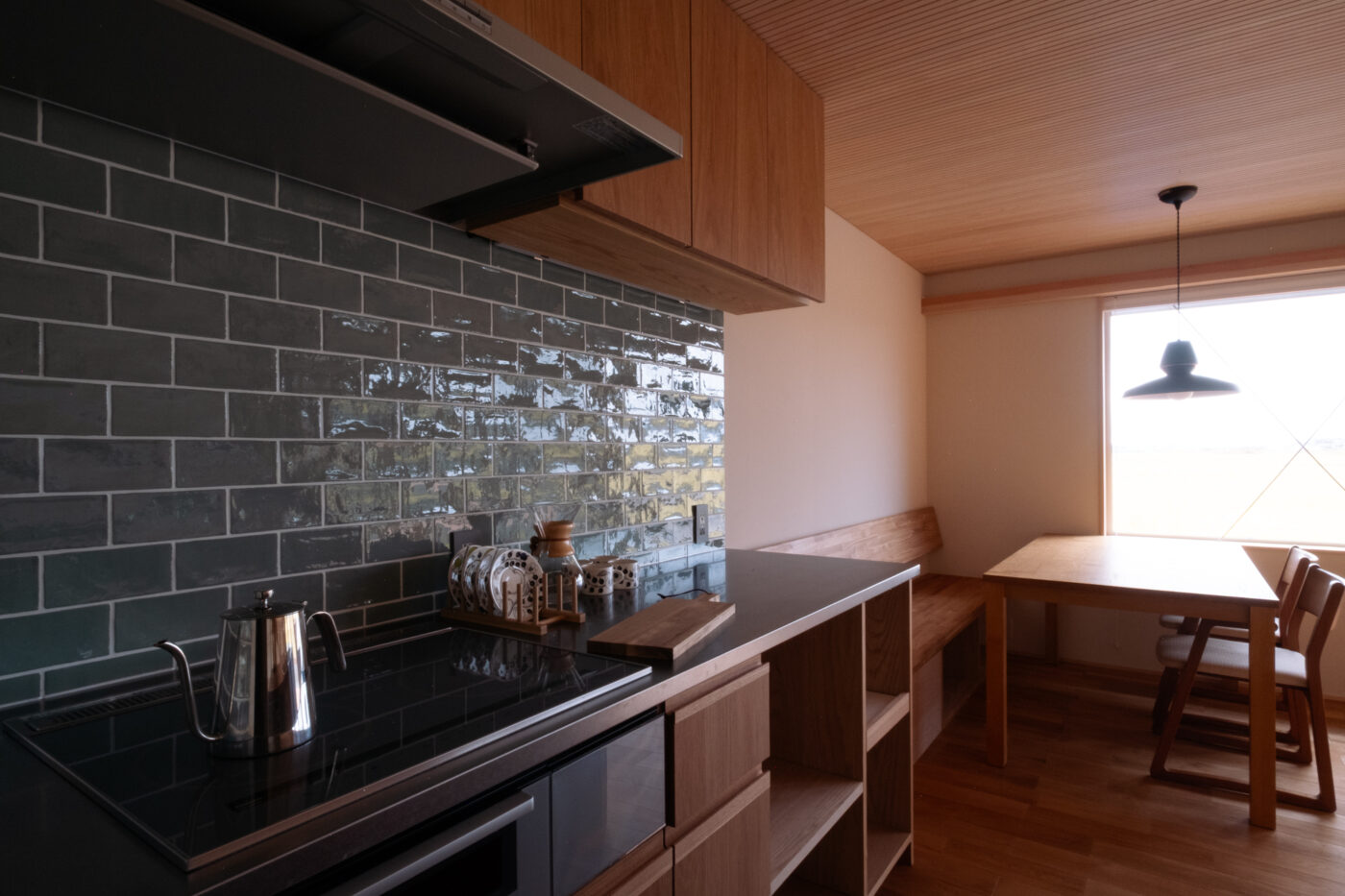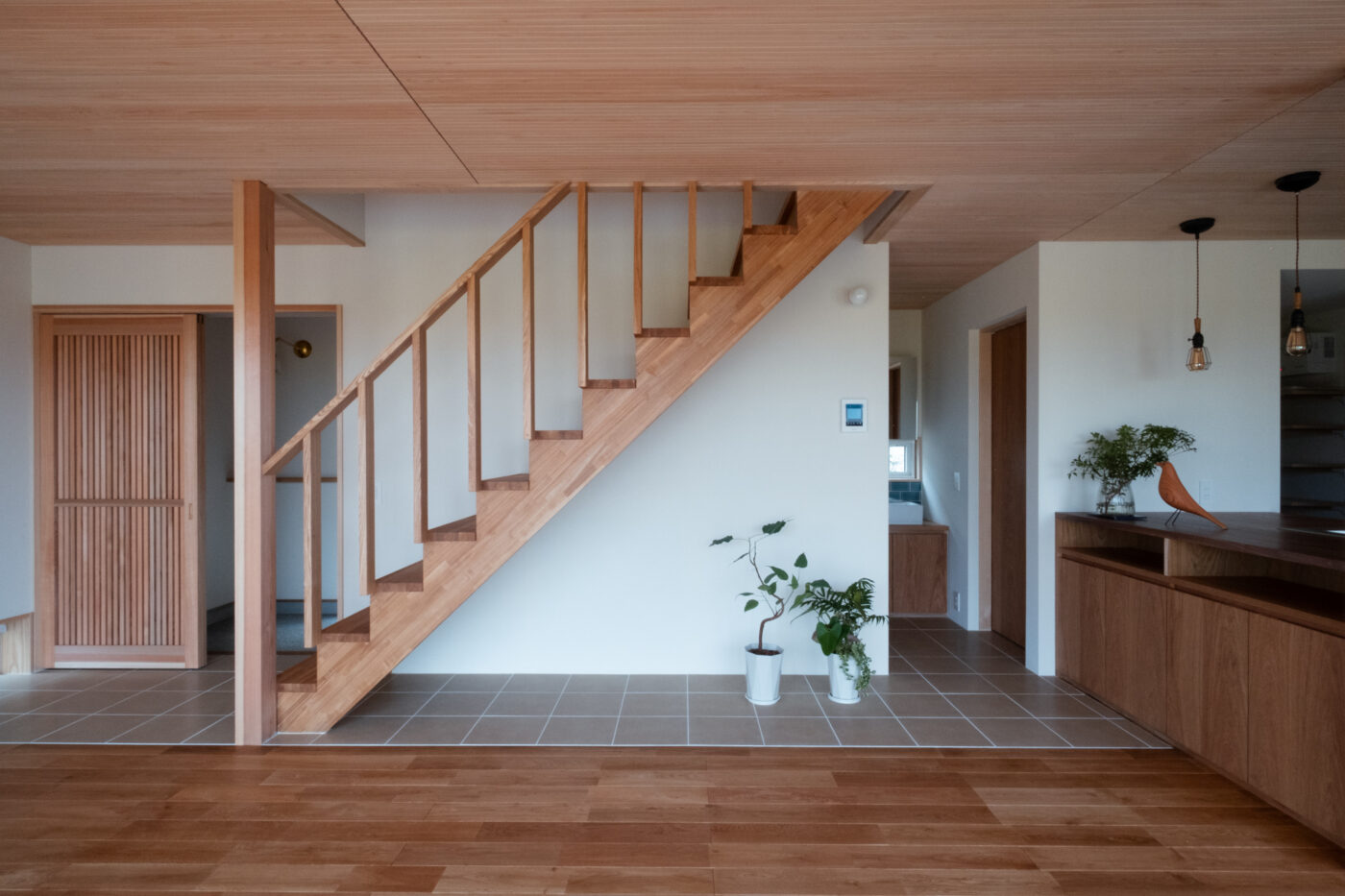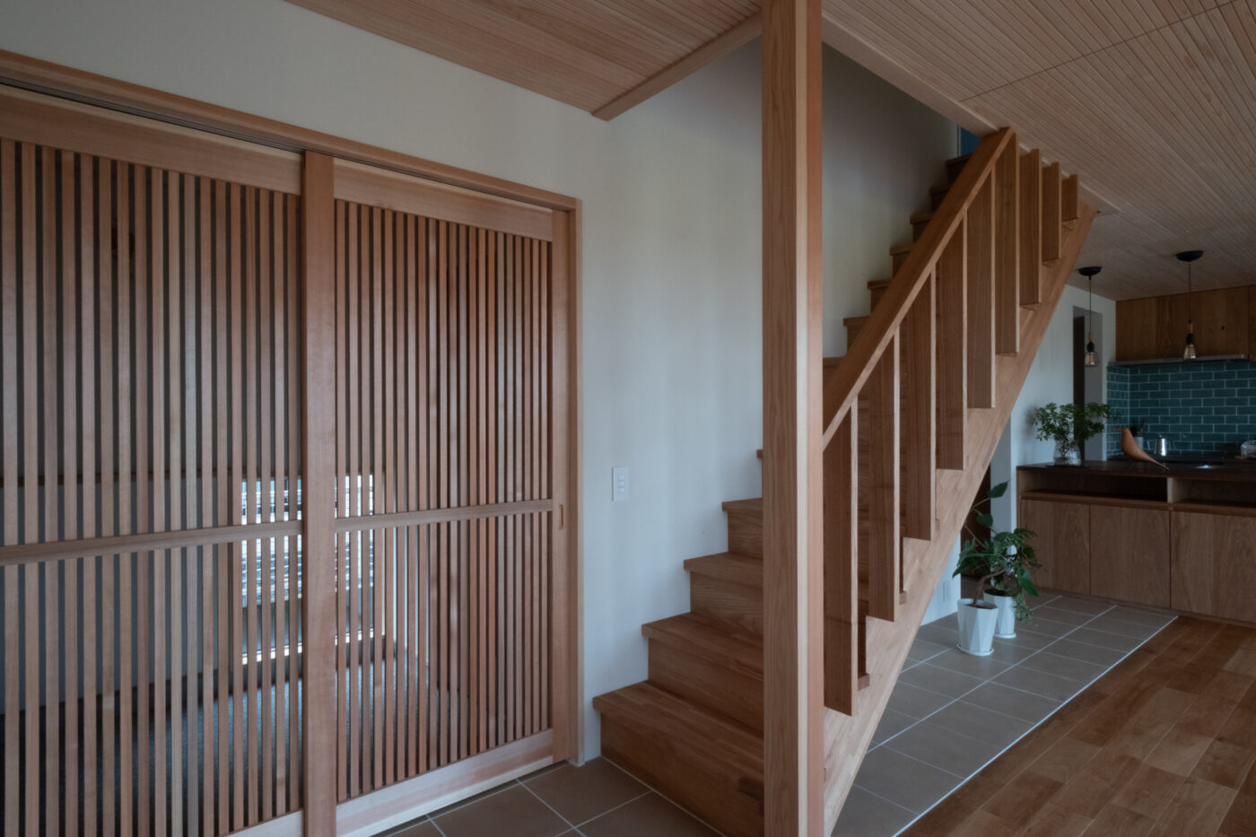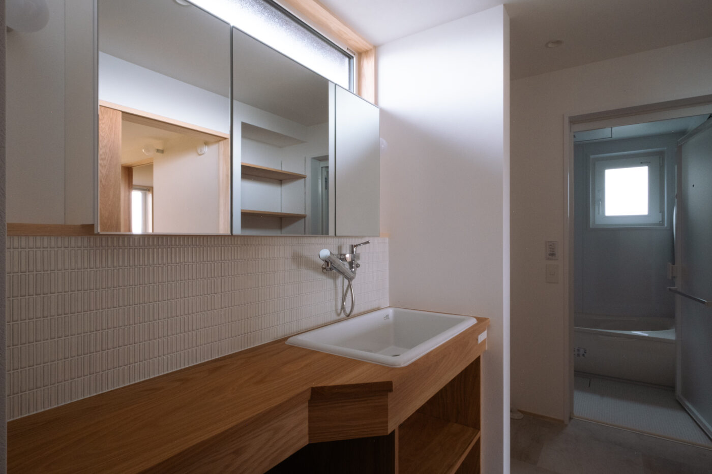 また、愛犬と暮らすため、主室の床は一部タイルを貼り、アプローチに面して家族の帰りを見守れる地窓も設置してみました。